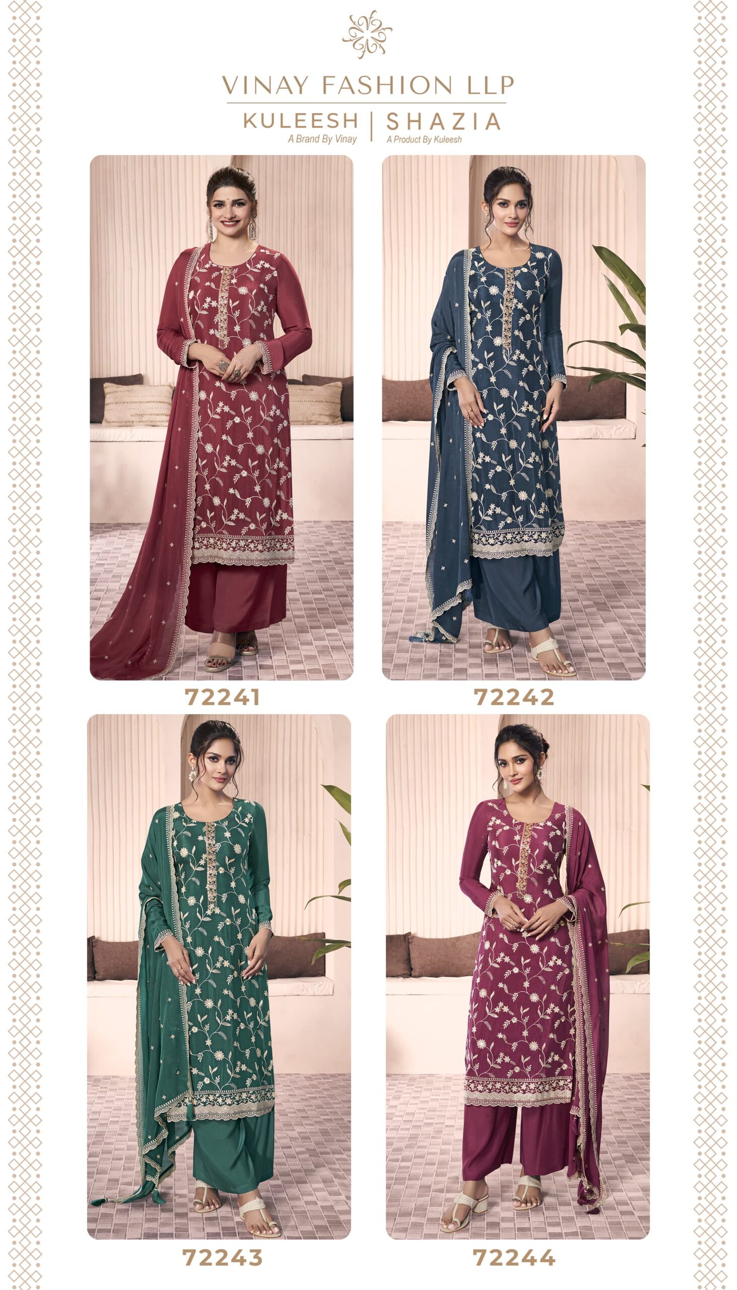 Priced at ₹1880/- per piece, this set-to-set collection includes 4 exquisite designs. Order now to embrace timeless elegance!