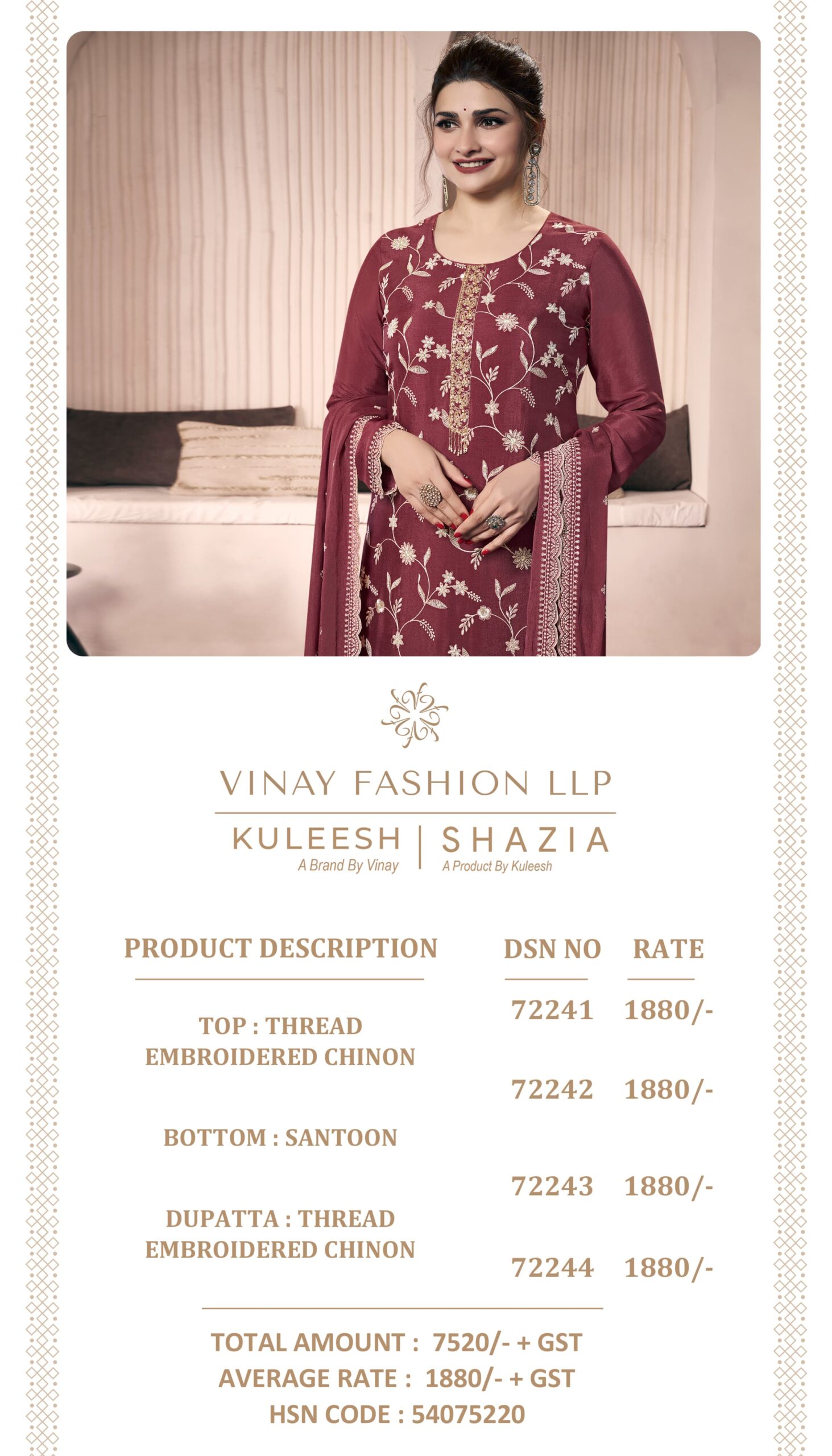 - Rate: ₹1880/- per piece (Set-to-set)