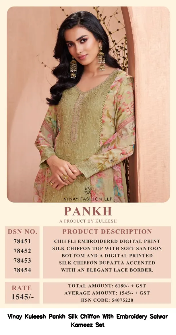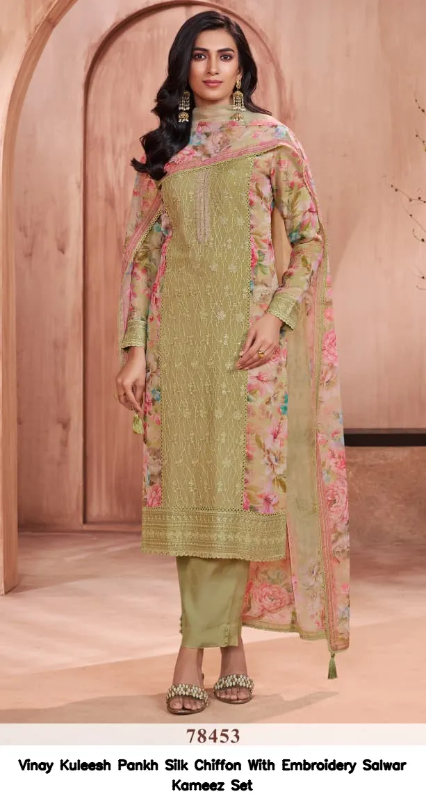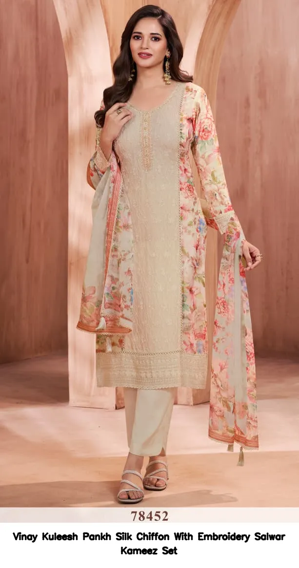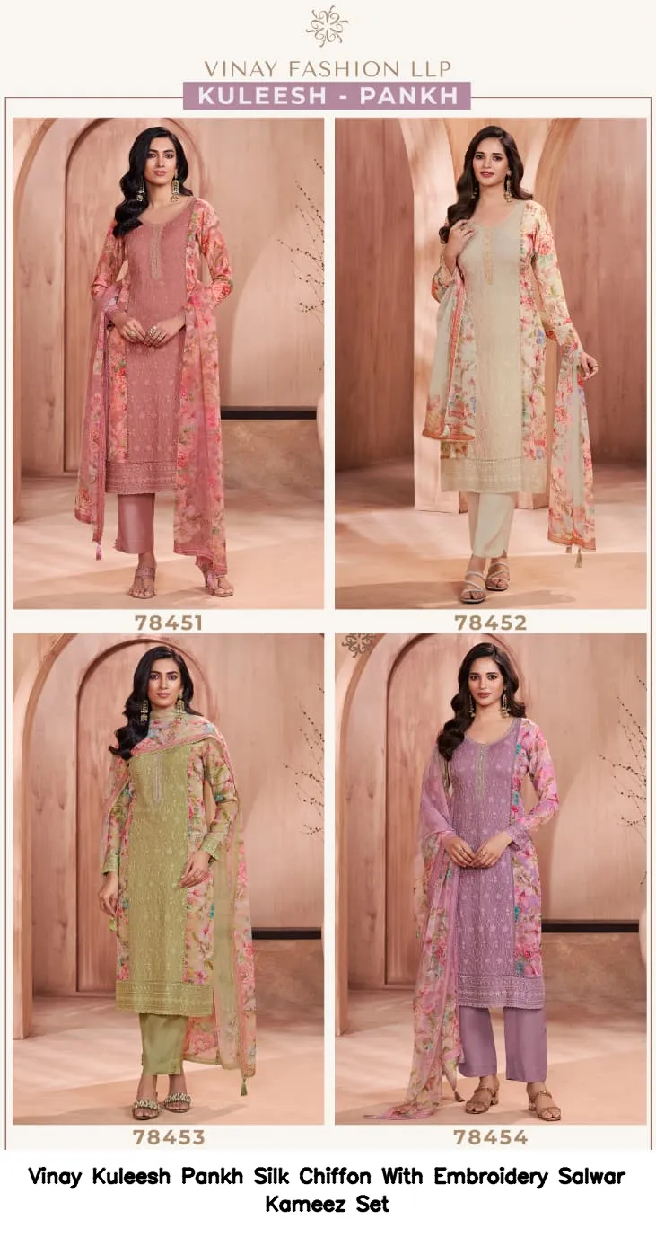 Vinay Kuleesh Pankh Silk Chiffon With Embroidery Salwar Kameez Set