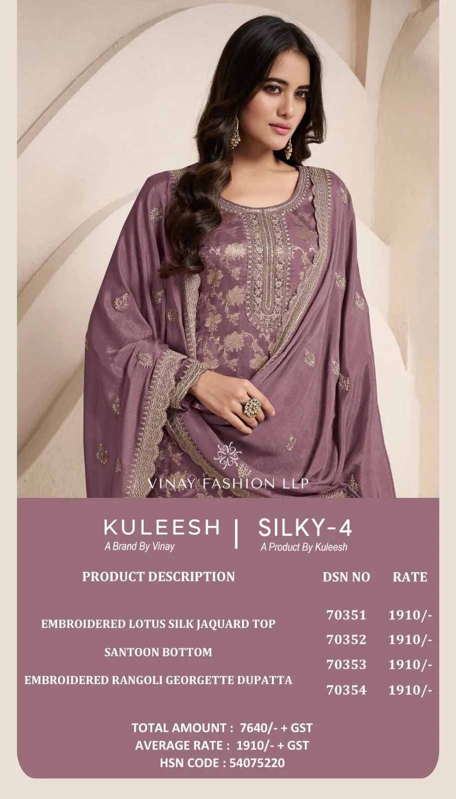 Vinay Kuleesh Silky 4 Lotus Silk Wholesale Designer Salwar Suit Collection