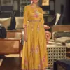 Gown: Our Pure Chanon Chiffon Gown is a masterpiece of elegance. Crafted from high-quality Chanon Chiffon fabric, it features a captivating digital print and intricate handwork that adds a touch of opulence to your outfit. The gown includes a handwork belt that cinches the waist, creating a flattering silhouette. The design exudes grace and charm, making it a perfect choice for weddings, formal events, or any special occasion.