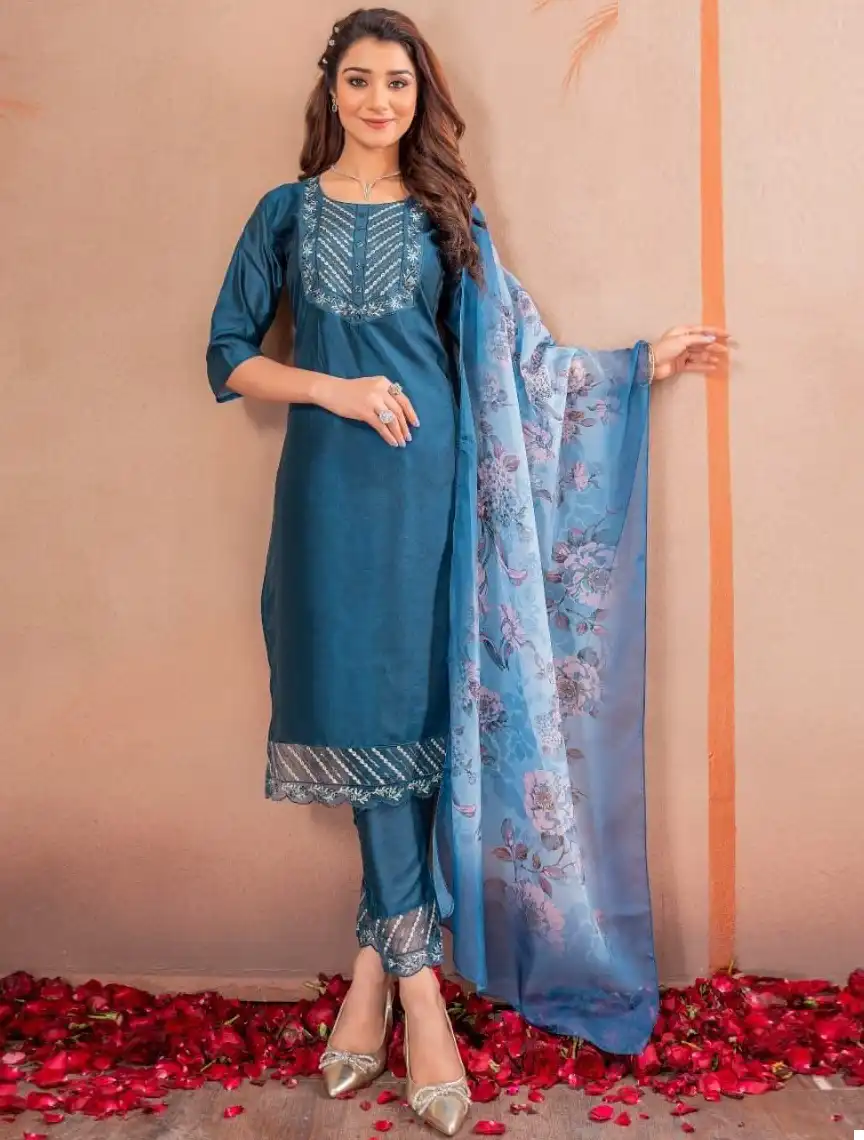 Elevate your ethnic wear collection with this exquisite Fancy Designer Organza Suit Set. It offers a combination of luxury, style, and comfort. Whether it’s a festive occasion or a special event, this suit set is sure to make you look stunning.