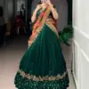 - The fully stitched lehenga comes with canvas support and attached can-can, offering a perfect flare of 3.50 meters that enhances movement and elegance. Detailed with sequins and fine thread embroidery, the lehenga creates a shimmering yet graceful appearance suitable for weddings, receptions, and high-end party wear.