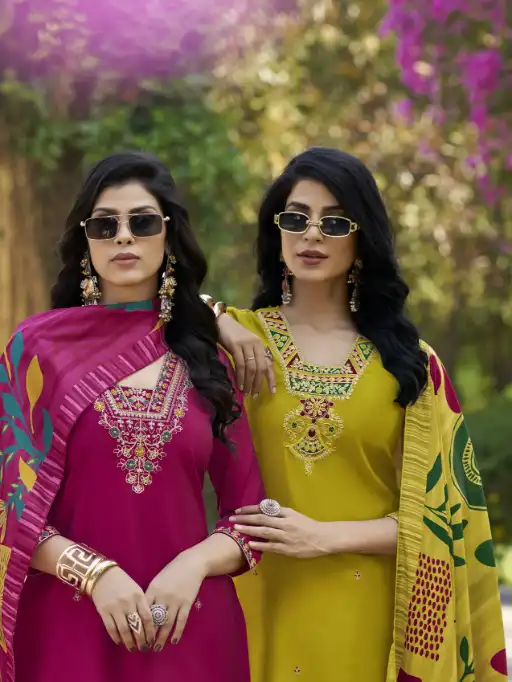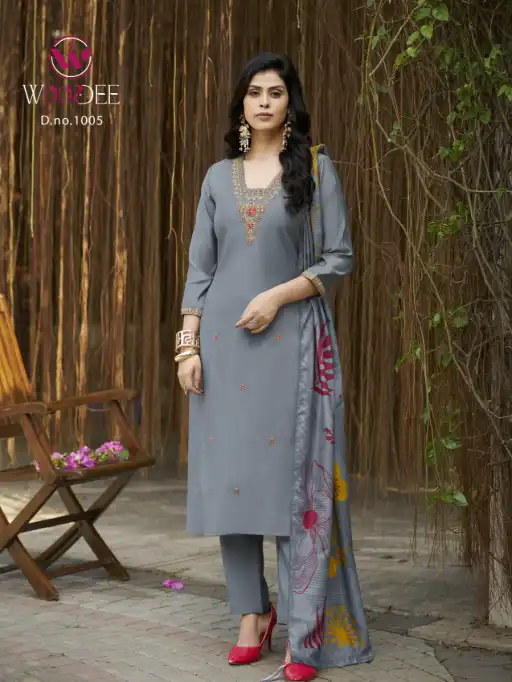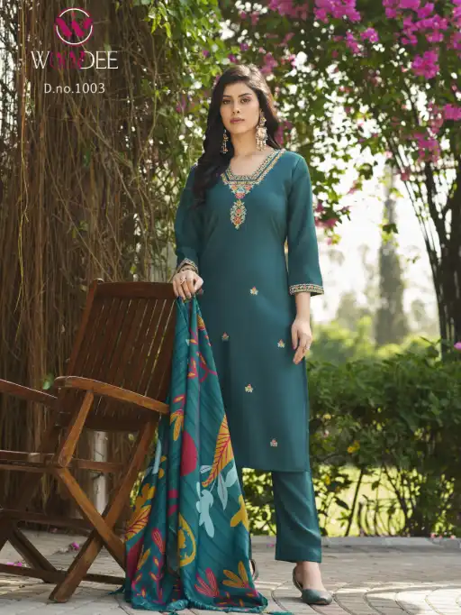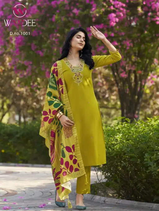 Woodee Miralee Wholesale Viscose Roman Silk Kurti With Bottom Dupatta.