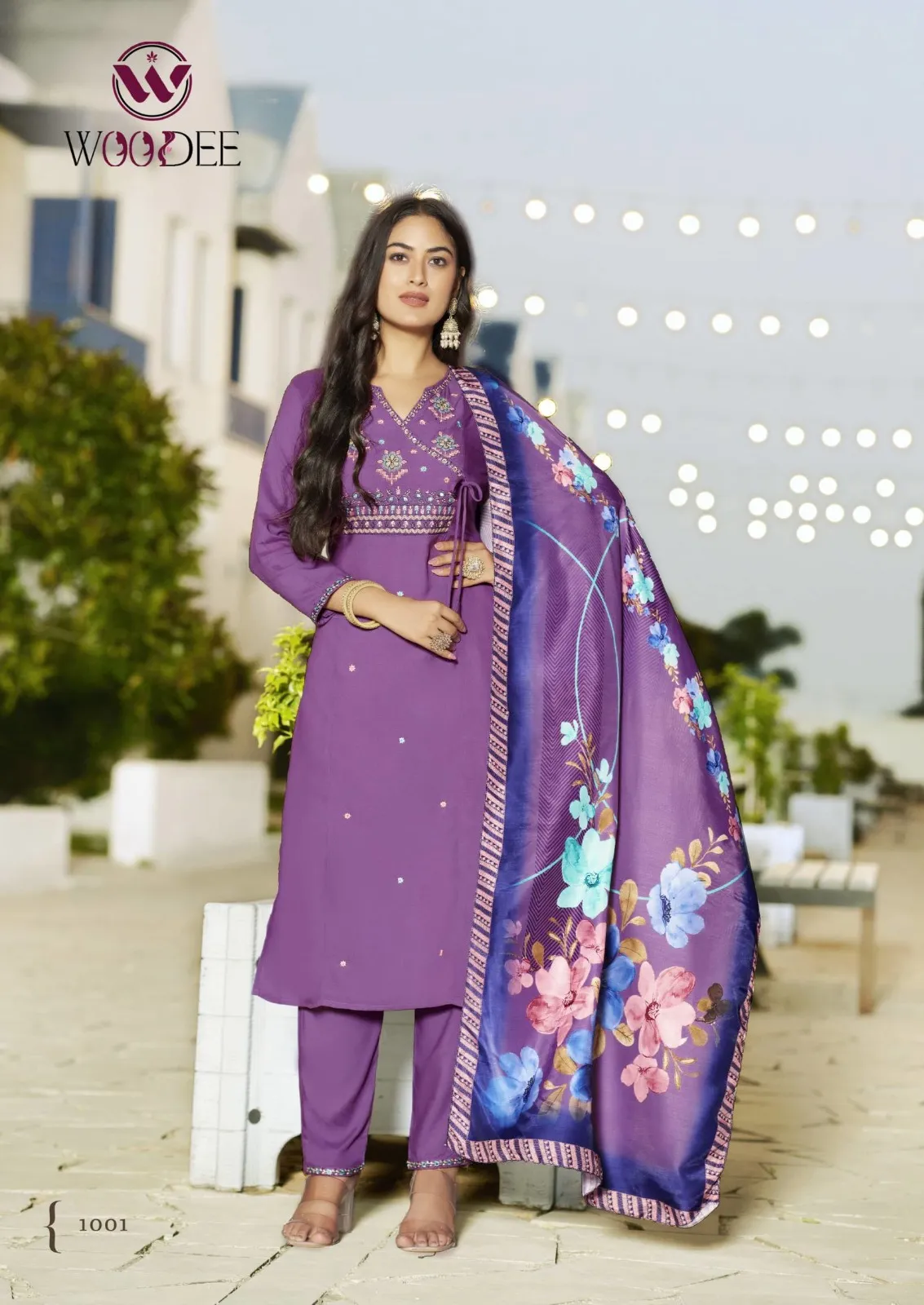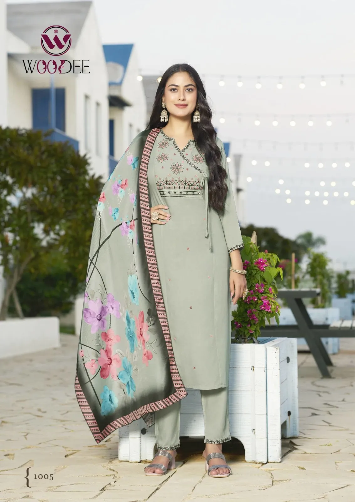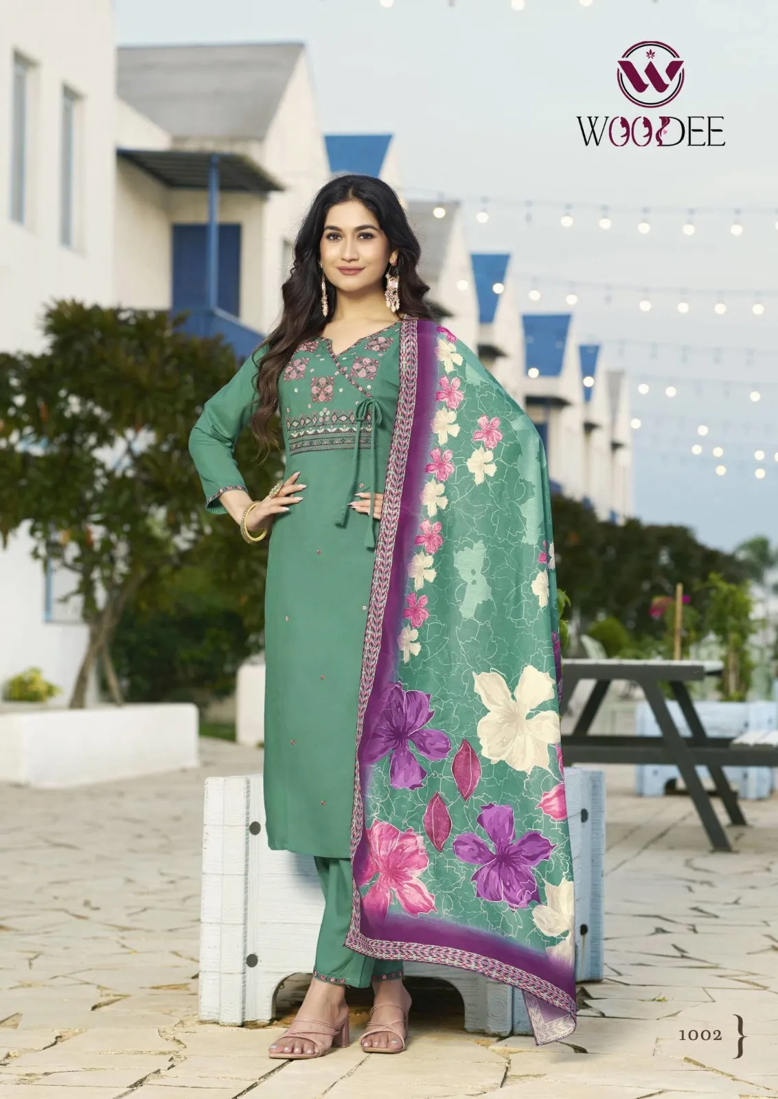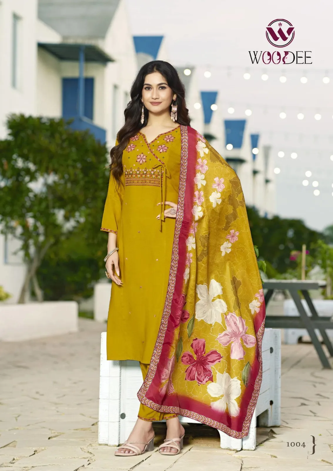 Woodee Sargam Fancy Thread Work Kurti Readymade Suit