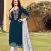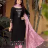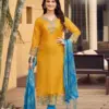 Elegantly designed viscose weaving suits adorned with intricate embroidery and handwork. Paired with a stylish bandhani dupatta and stretchable cotton lycra bottom for all-day comfort and style.