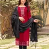 Buy Wooglee Sagaai stitched suit collection featuring viscose weaving tops with embroidery and handwork, paired with bandhani print dupatta at the best wholesale price.