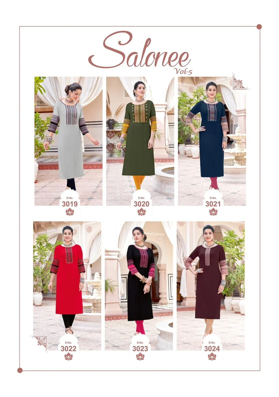 Wooglee Salonee Vol 5 Heavy Rayon Wholesale Fancy Kurtis Catalog