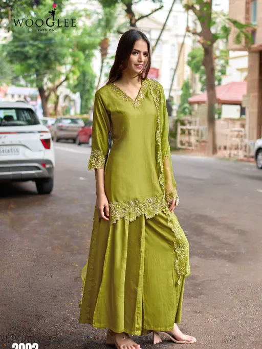 Wooglee Shabnam Readymade Wholesale Gajji Silk Salwar Suit.