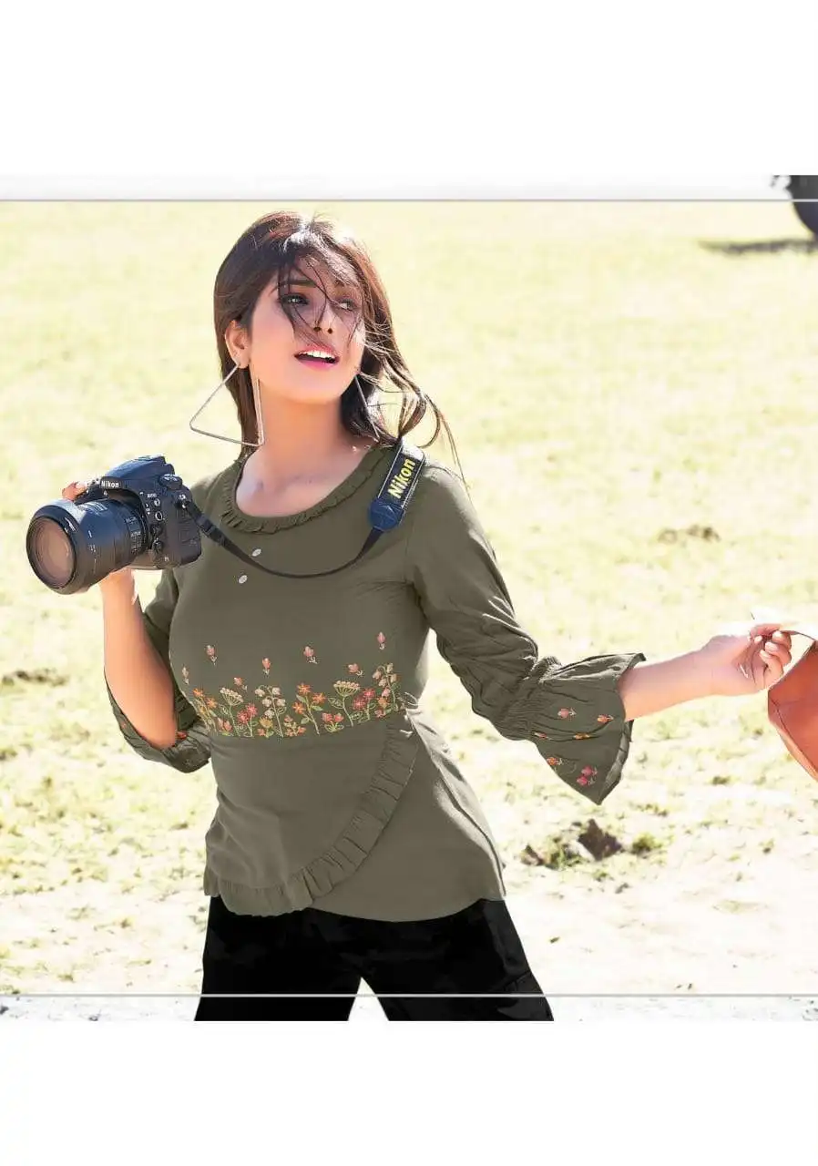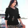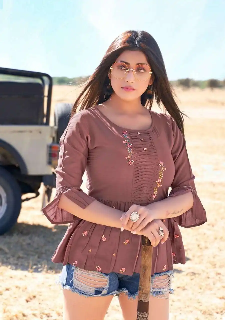 - Top: The use of rayon as the base material provides a comfortable fit and a graceful fall, complemented by intricate weaved embroidery work for a touch of sophistication.