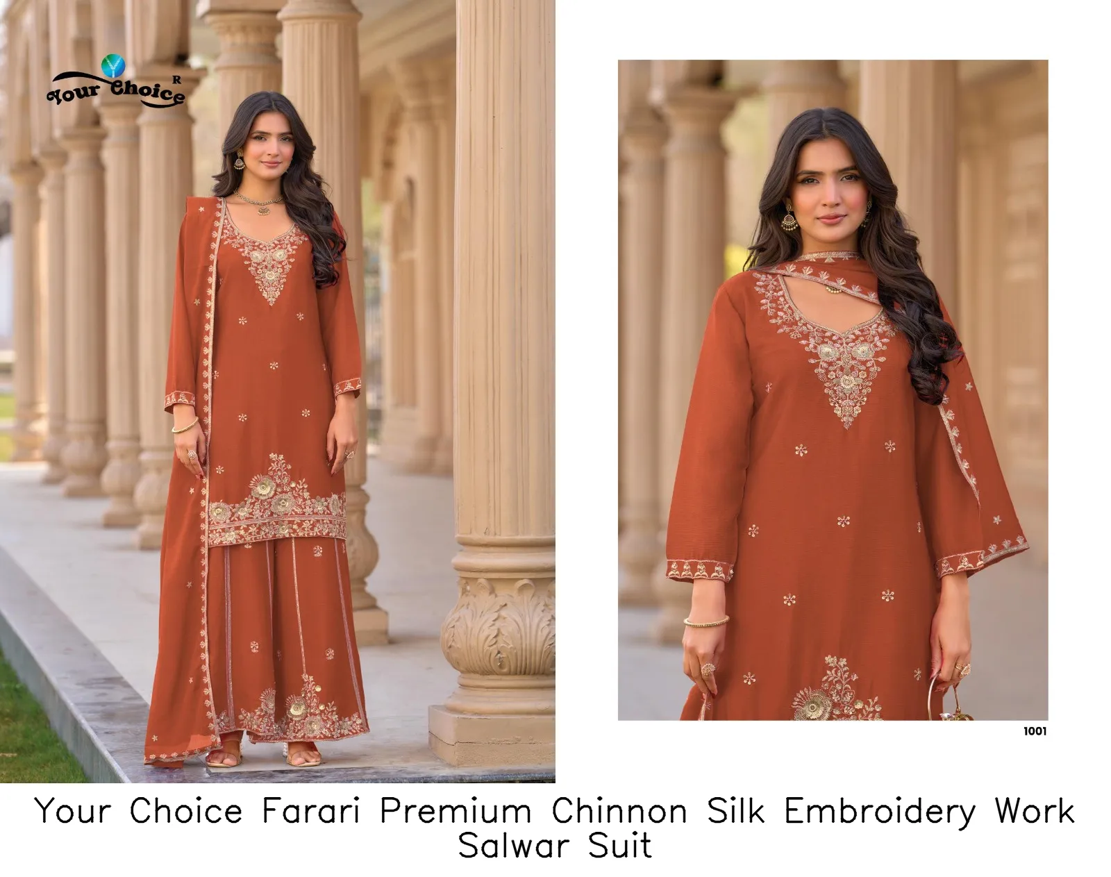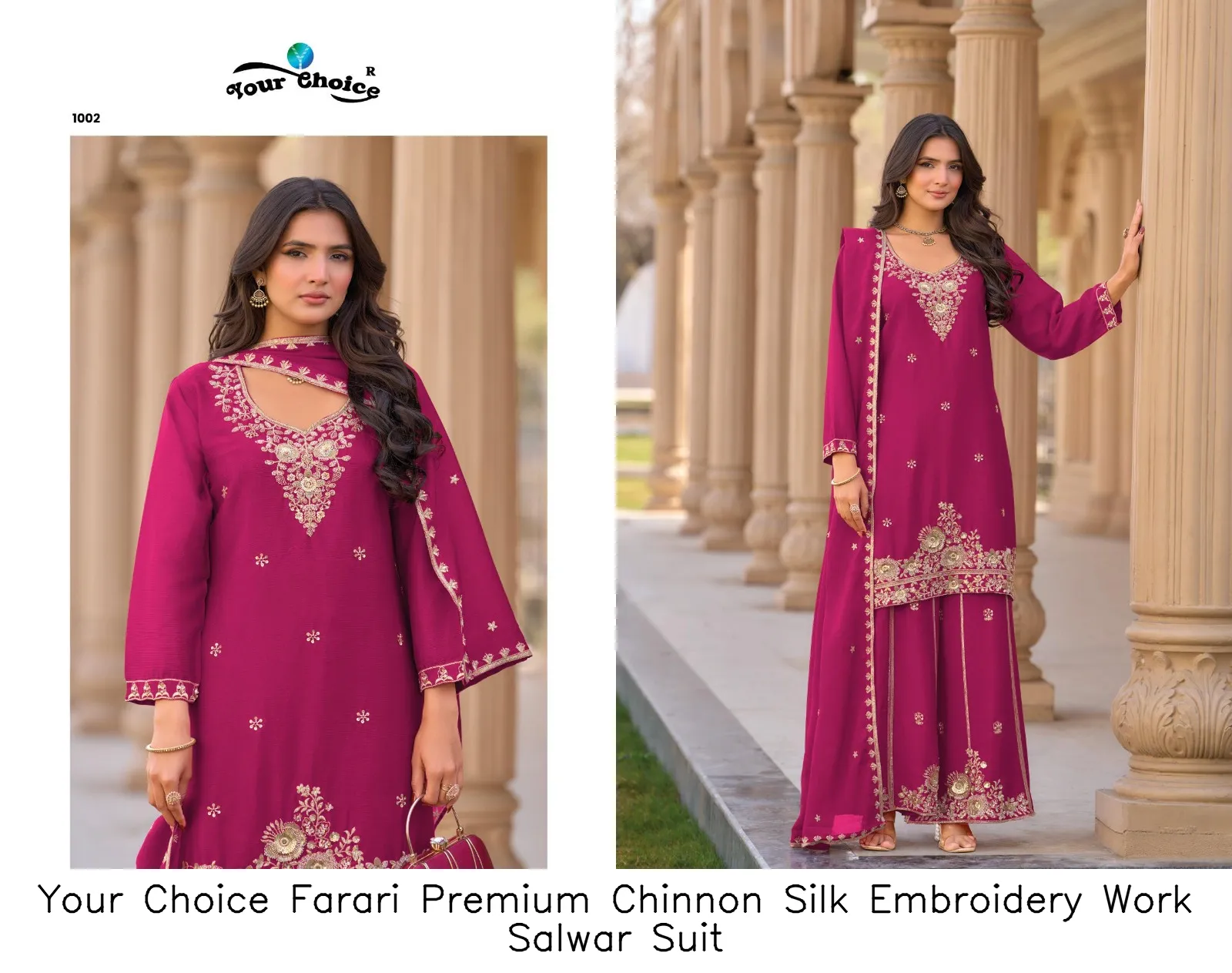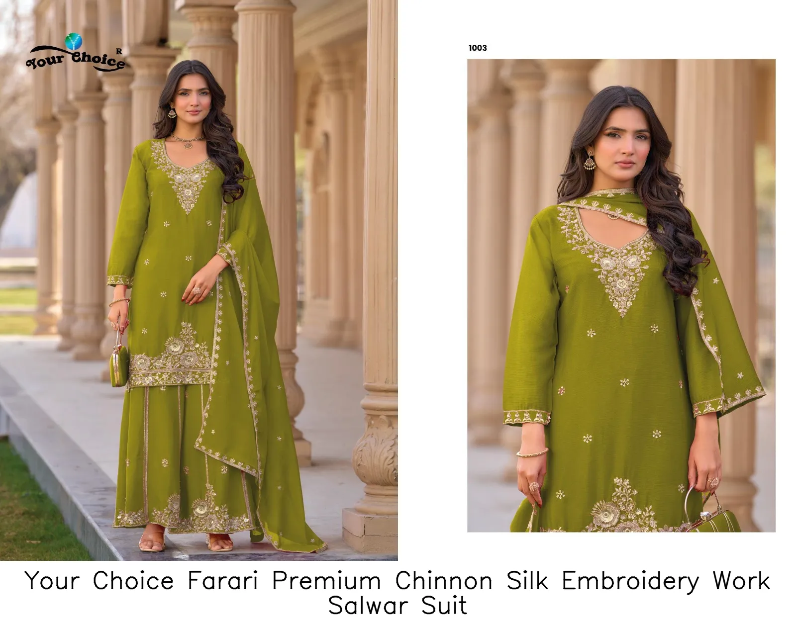 Your Choice Farari Premium Chinnon Silk Embroidery Work Salwar Suit