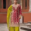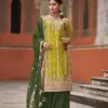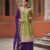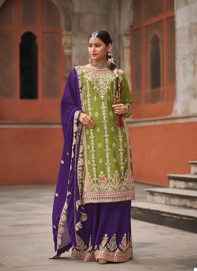 - Top: Our Semi Pure Chiffon Top features intricate embroidery and delicate embellishments, adding a luxurious touch to your ensemble. The semi-pure chiffon fabric drapes beautifully, creating a flattering silhouette that enhances your feminine curves. Whether you’re attending a wedding, engagement, or party, this top ensures you make a stylish statement with every step.