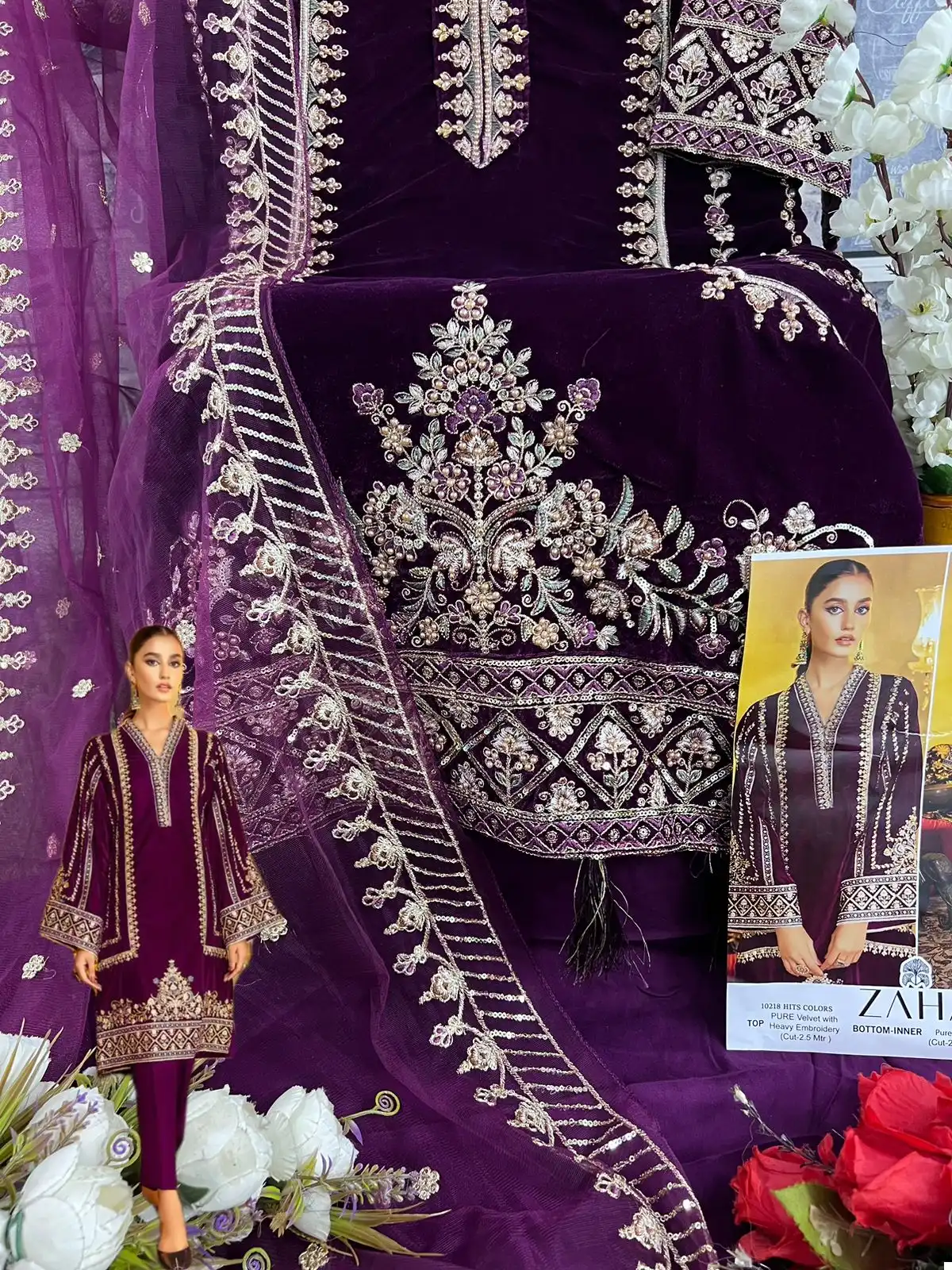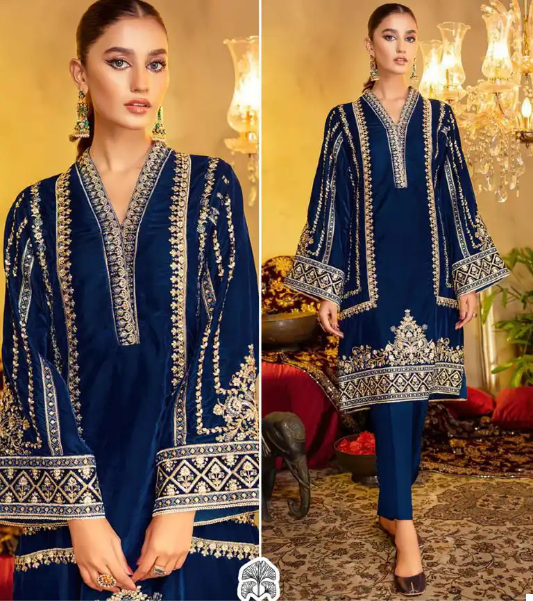 Top: Elevate your ethnic look with this luxurious suit set featuring a top made from pure velvet. The top is adorned with intricate and heavy embroidery, adding a touch of opulence and sophistication to your outfit. It’s perfect for special occasions and events where you want to make a statement.