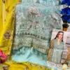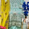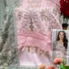 - Dupatta: Nazmin With Heavy Embroidered – The scarf or dupatta accompanying the outfit is made of nazmin fabric with heavy embroidery.