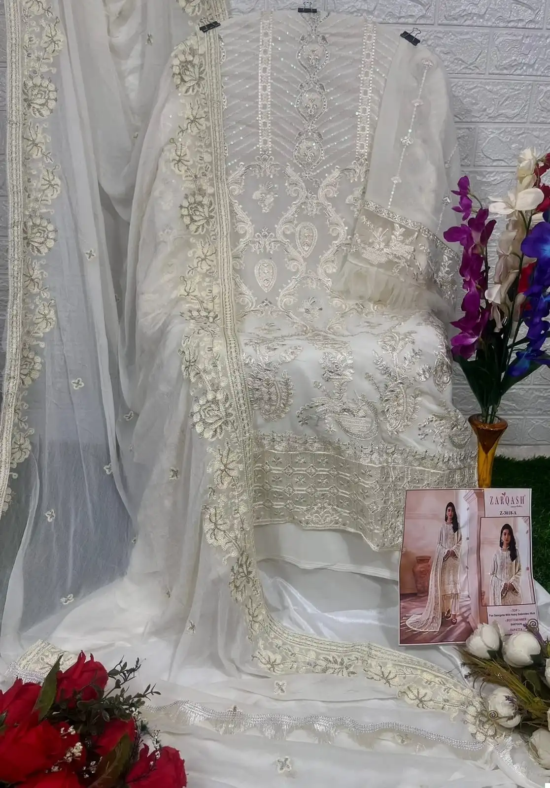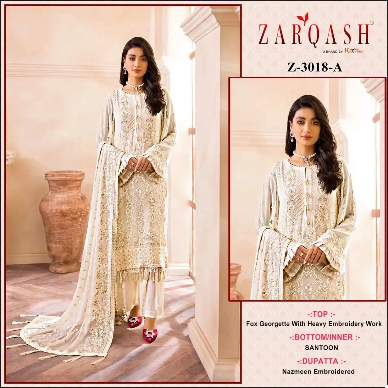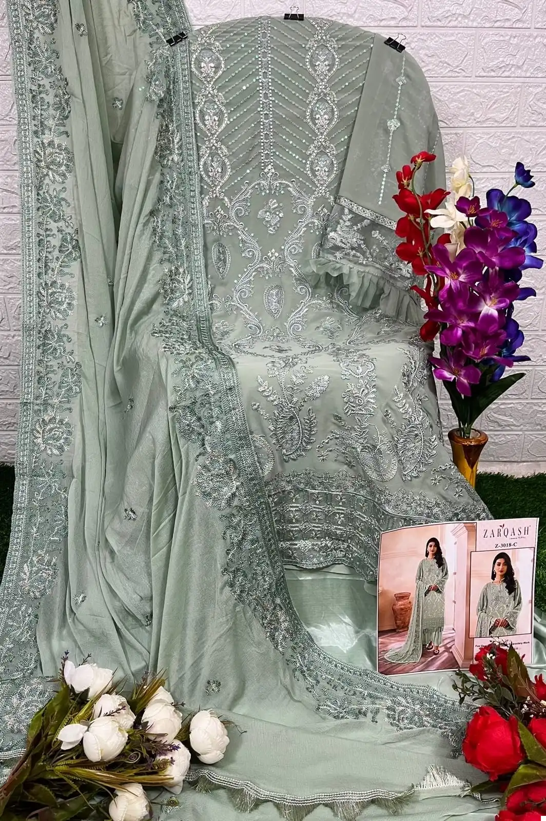 Introducing the Zarqash 3018 Faux Georgette Wholesale Pakistani Suits Catalog—a symphony of elegance and grace in ethnic fashion. Crafted from premium Faux Georgette, this wholesale collection is a testament to the brand’s dedication to creating sophisticated Pakistani suits that seamlessly blend traditional charm with modern flair.