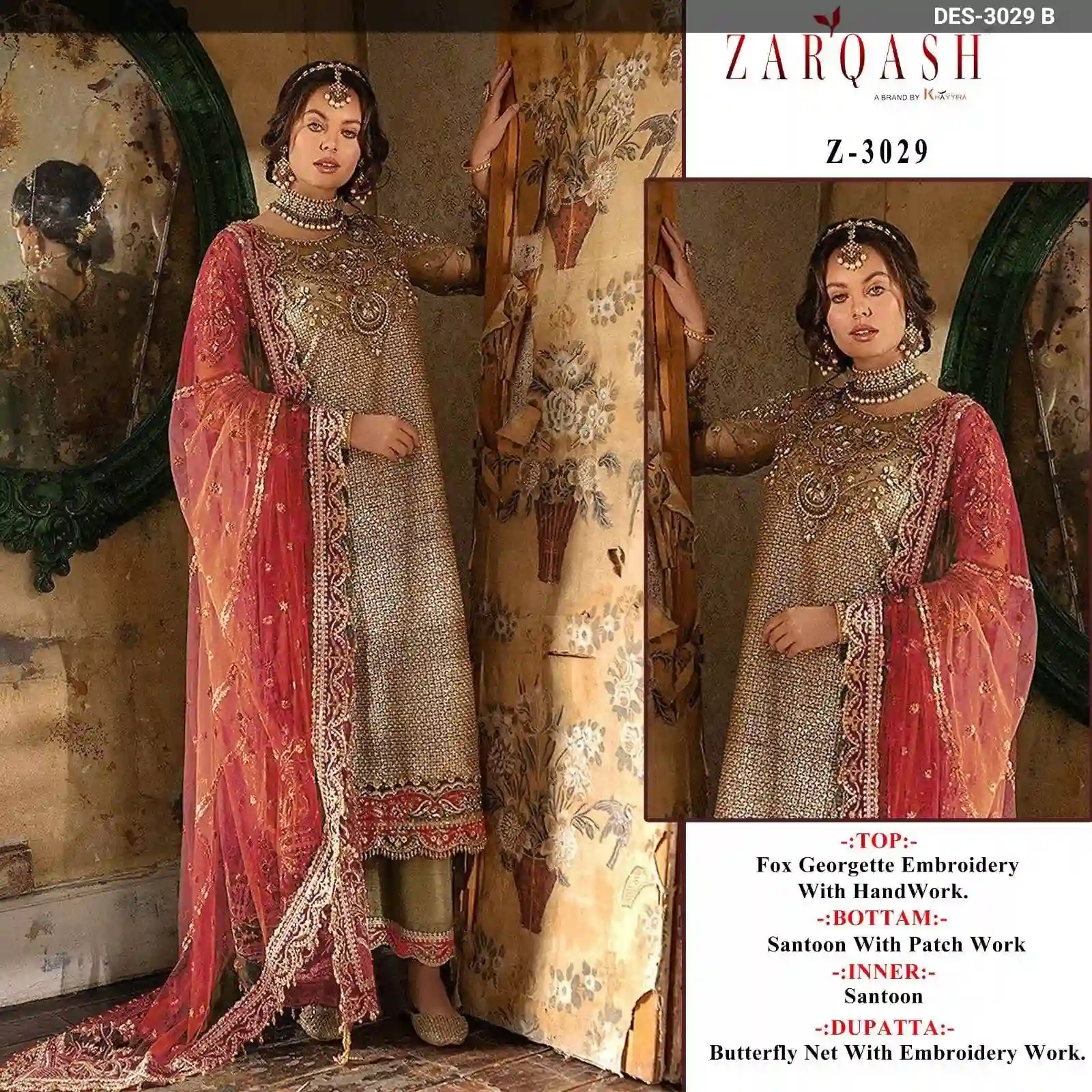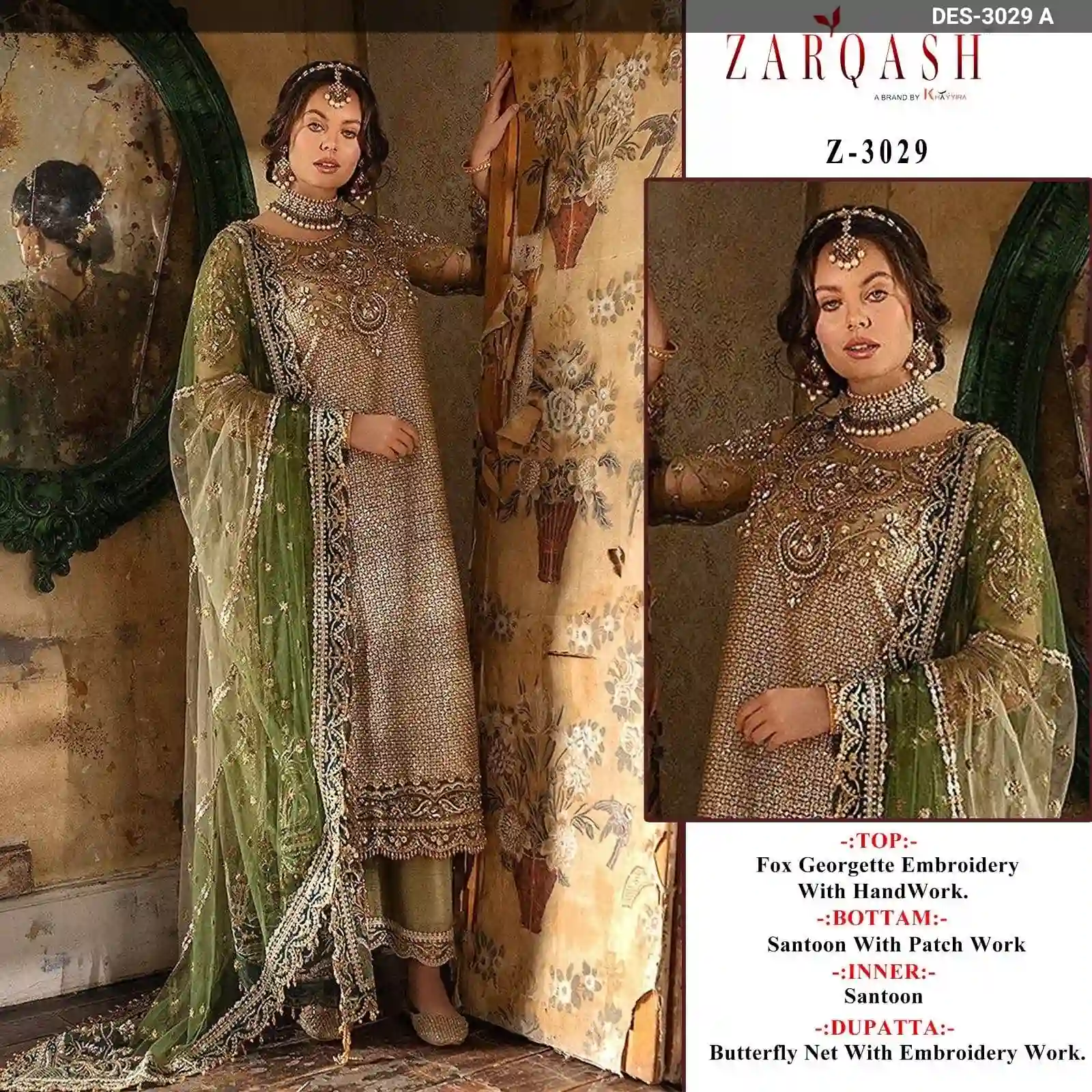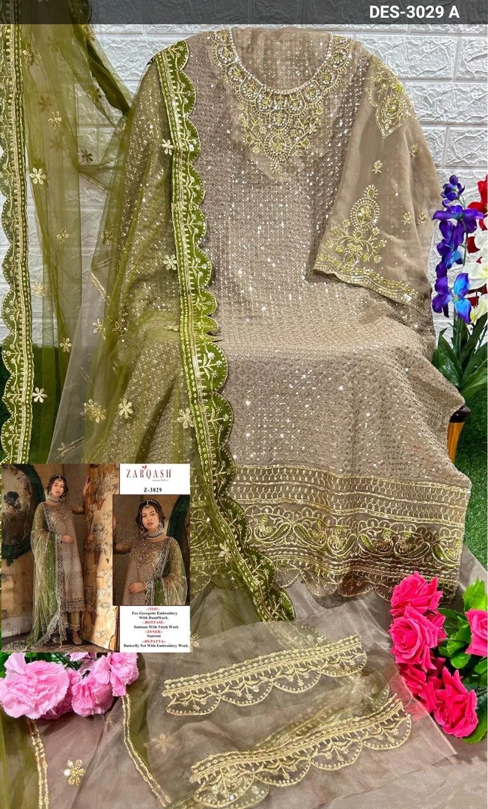 This product offers a stylish and elegant outfit, perfect for formal events and special occasions, combining the lightweight allure of Faux Georgette with the richness of Santoon and the delicate elegance of Butterfly Net.