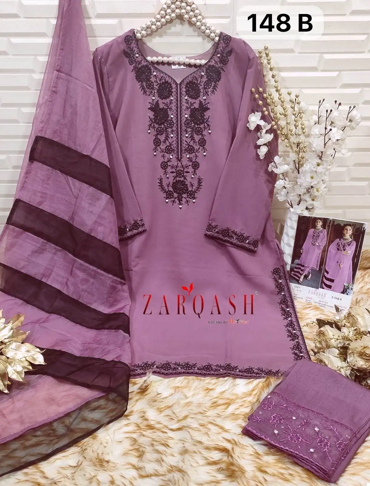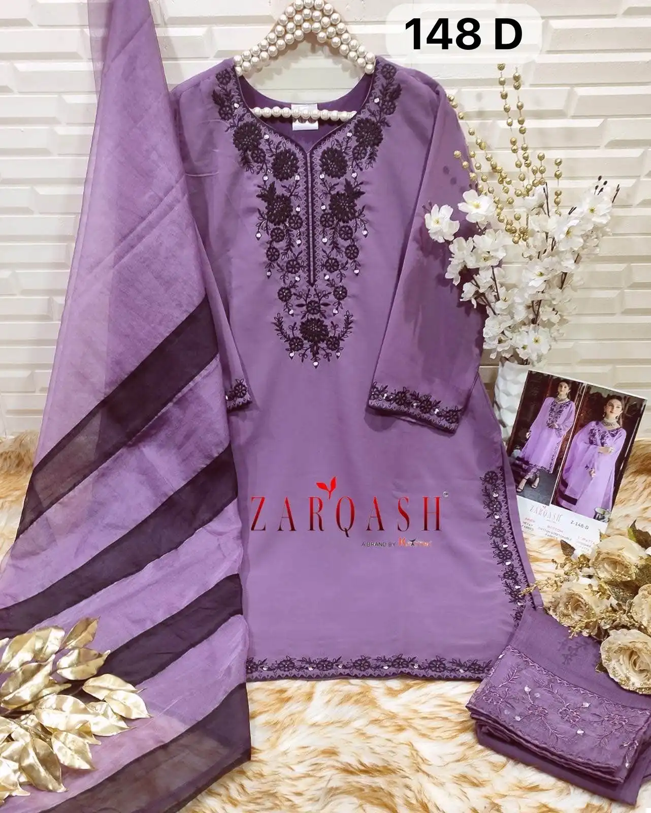 - The dupatta is crafted from Organza and designed by a designer.