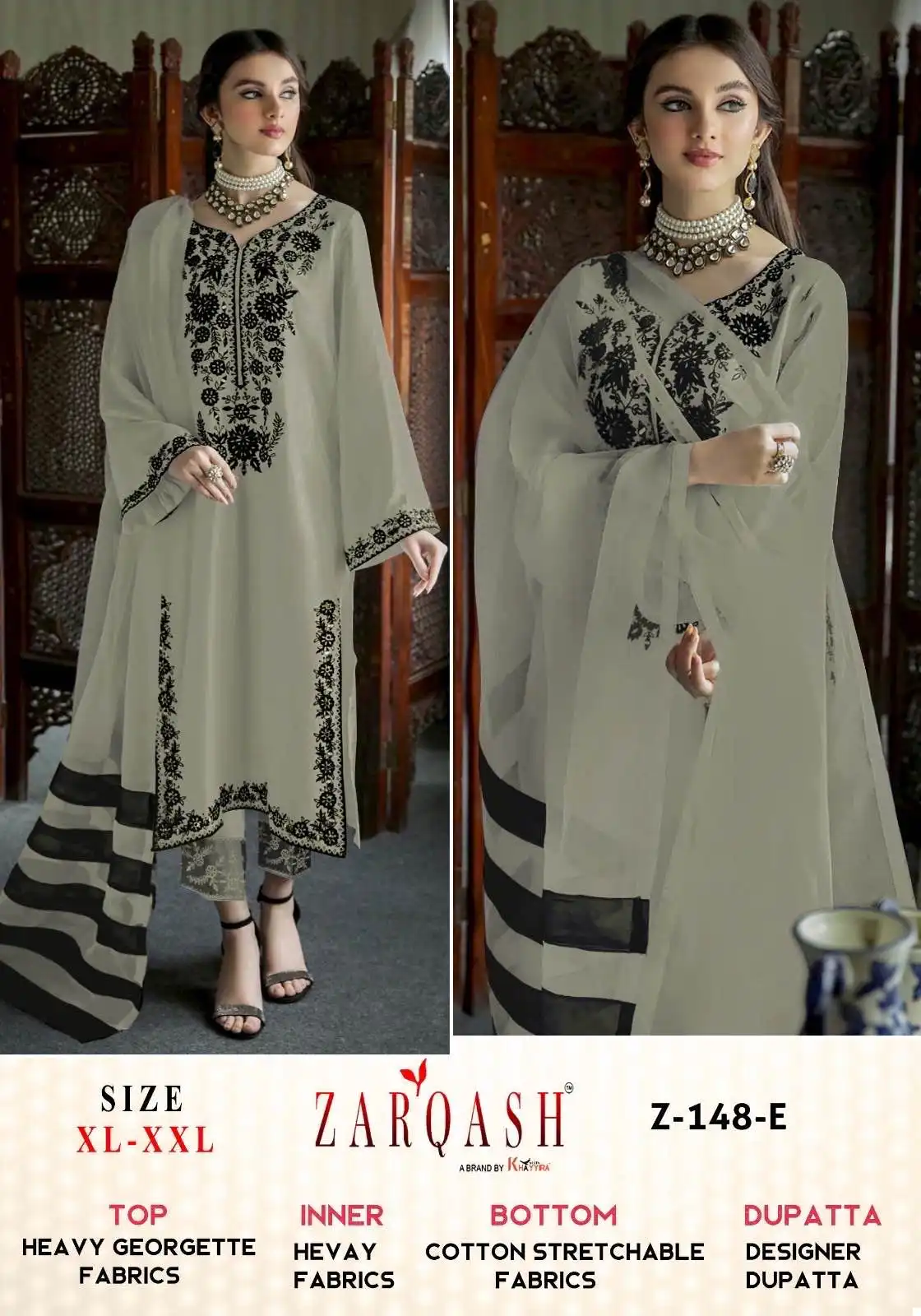 - The top is made of Heavy Georgette Fabric and features embroidery.