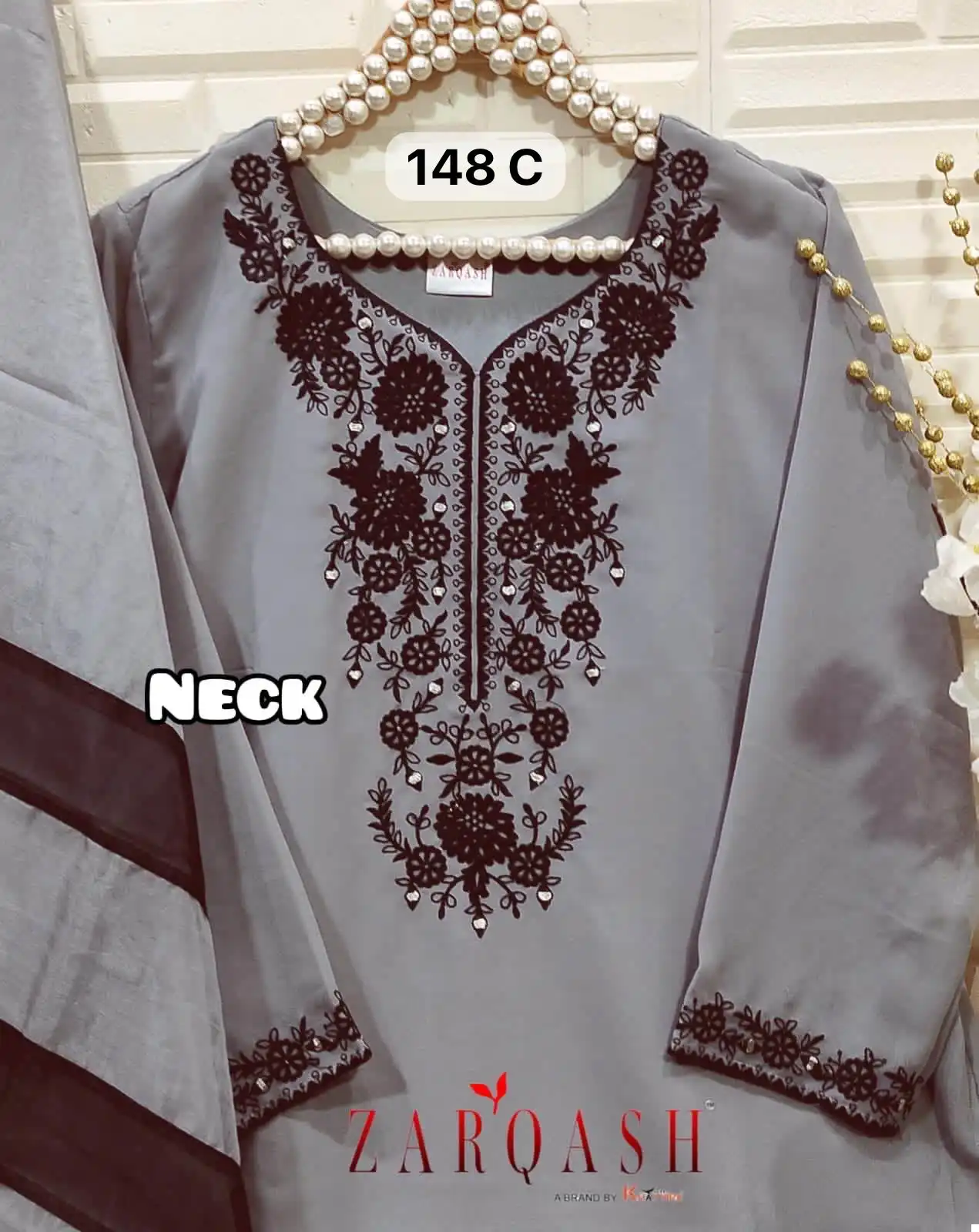 - Dupatta: Described as organza designer, which typically means it’s a sheer, lightweight fabric that’s often used to add an elegant touch to South Asian outfits.