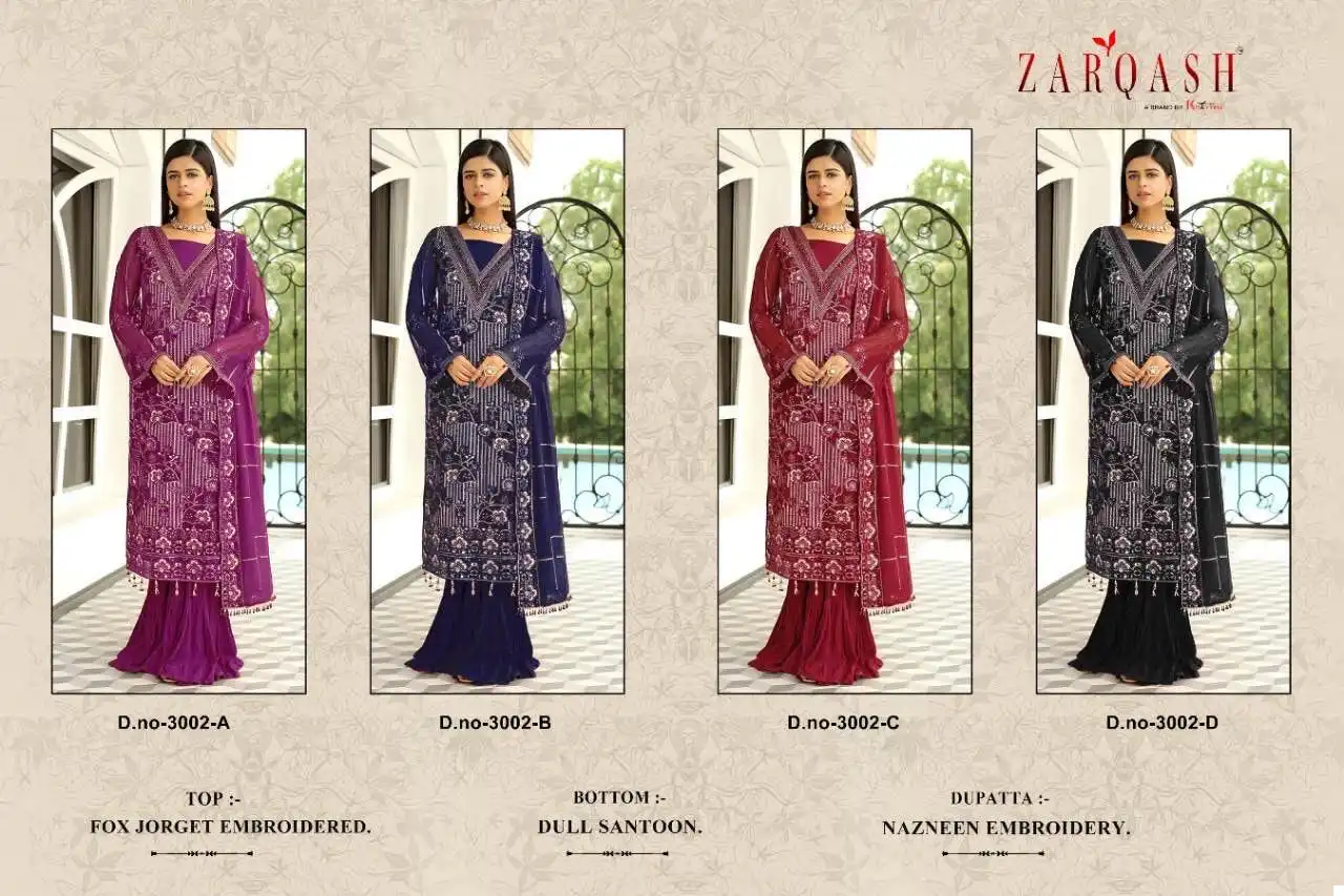 Zarqash Z 3002 Georgette Wholesale Pakistani Salwar Suit Catalog