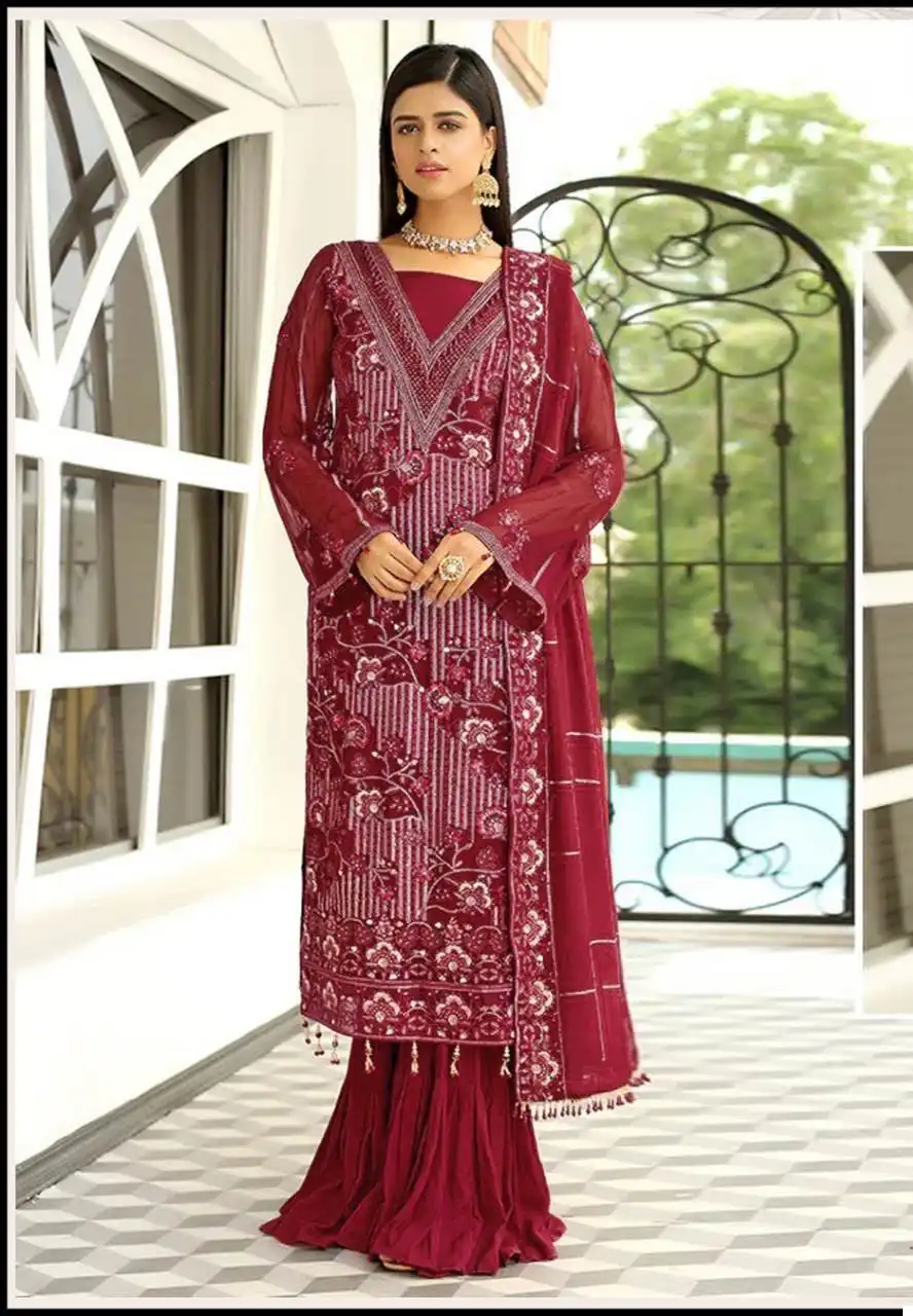 - Top: Georgette Heavy Embroidered – This describes the top part of the outfit, which is made of georgette fabric with heavy embroidery.
