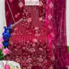 - Dupatta: Nazneen with Heavy Embroidered Border – The scarf or dupatta accompanying the outfit is made of Nazneen fabric with a heavy embroidered border.