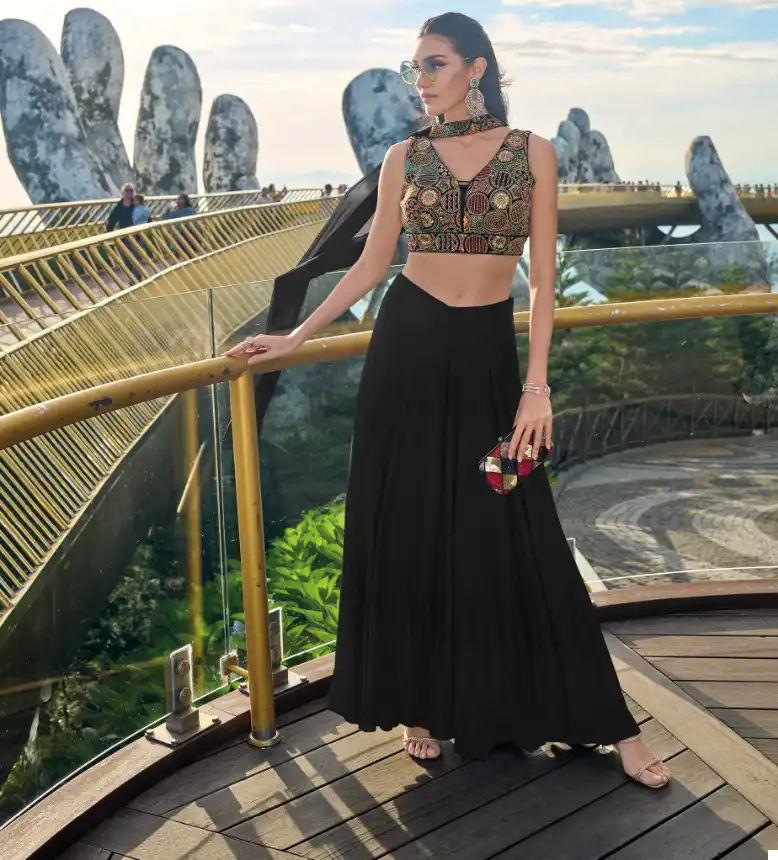 - Bottom: Complete your ensemble with our Heavy Chinon bottom, designed for comfort and style. The premium fabric and impeccable tailoring ensure a flattering fit and effortless movement, allowing you to dance the night away with confidence and grace.