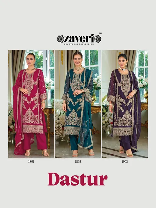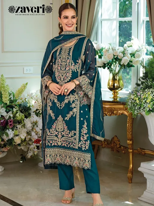 Zaveri Dastur Wholesale Organza Readymade Designer Pakistani Suit Collection