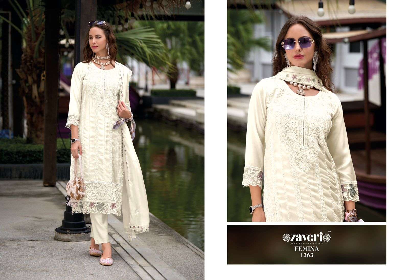 Zaveri Femina-3 Wholesale Readymade Embroidered Organza Salwar Suit.