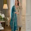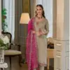 - Dupatta: Add an extra layer of elegance to your ensemble with our Soft Organza dupatta adorned with exquisite embroidery work. The sheer fabric and intricate detailing create a stunning visual impact, while the soft texture adds a touch of luxury and femininity to your overall look, ensuring you turn heads wherever you go.