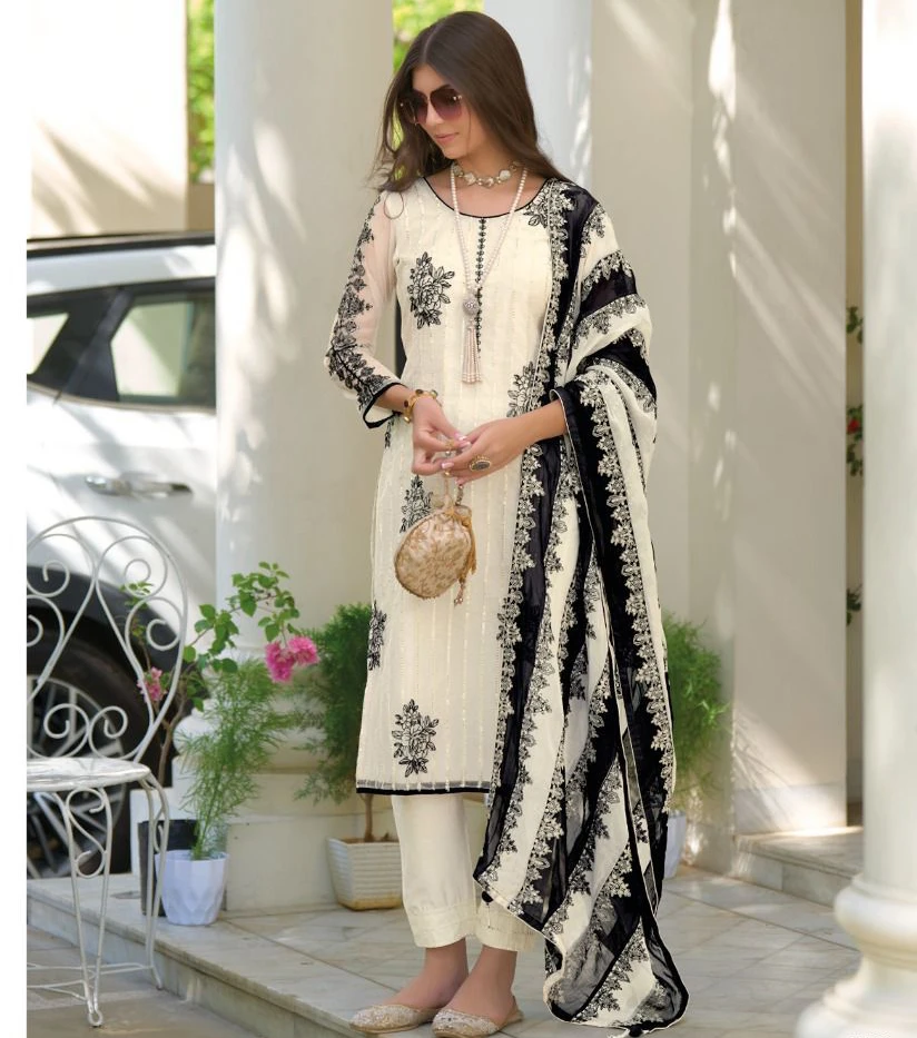 Introducing our exclusive Heavy Organza Ensemble, a blend of luxurious fabrics and exquisite embroidery. This set,