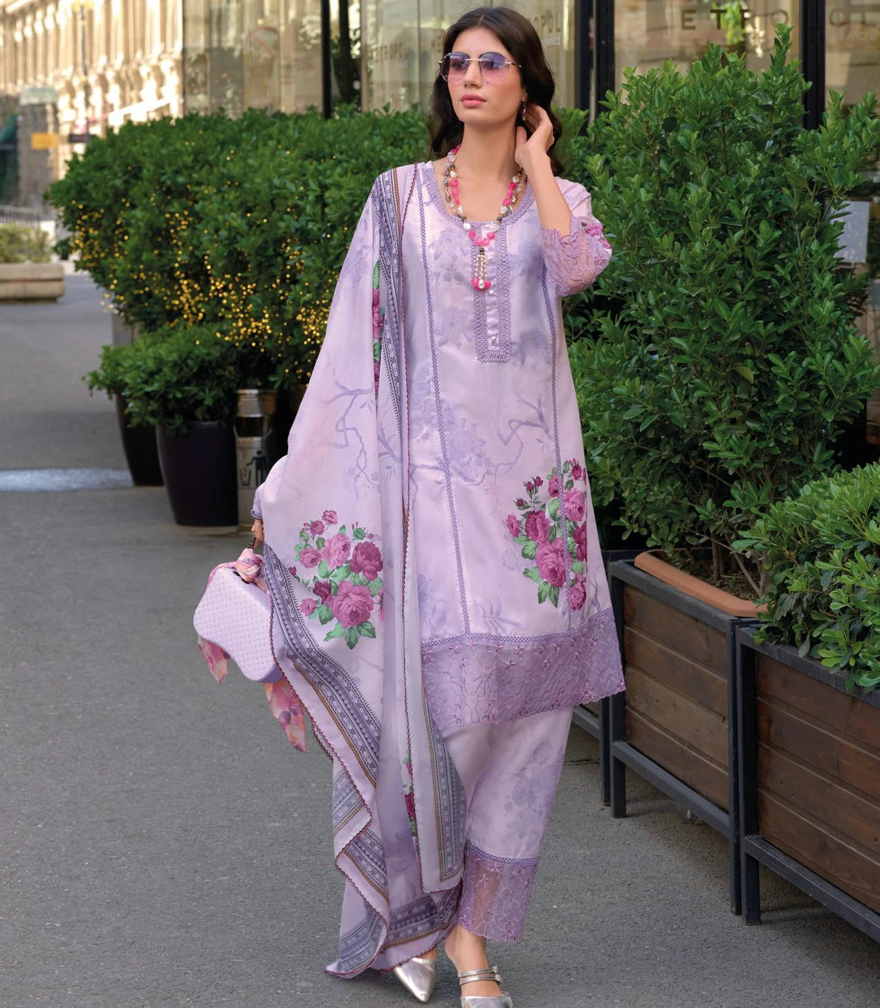 - Top: The top is crafted from premium cotton fabric, adorned with detailed digital print and embroidery work. This combination creates a stylish and elegant appearance, perfect for various occasions.