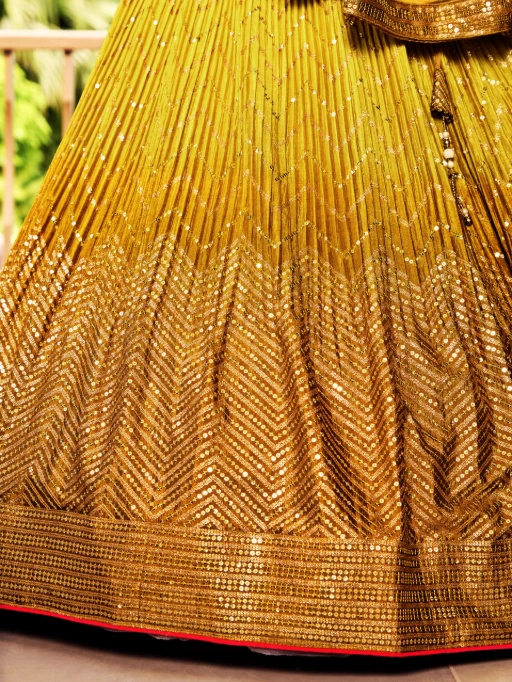 Buy Zeel 5057-Yellow Art Silk Haldi Wear Lehenga Choli semi-stitched haldi lehenga choli set in vibrant yellow art silk with sequin and thread embroidery at the best wholesale price.