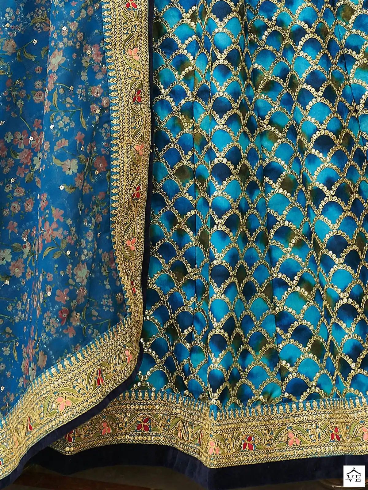 Organza Thread, Sequins, Dori & Zari Embroidery  Work With Floral Print 2.25 Meter