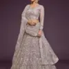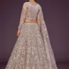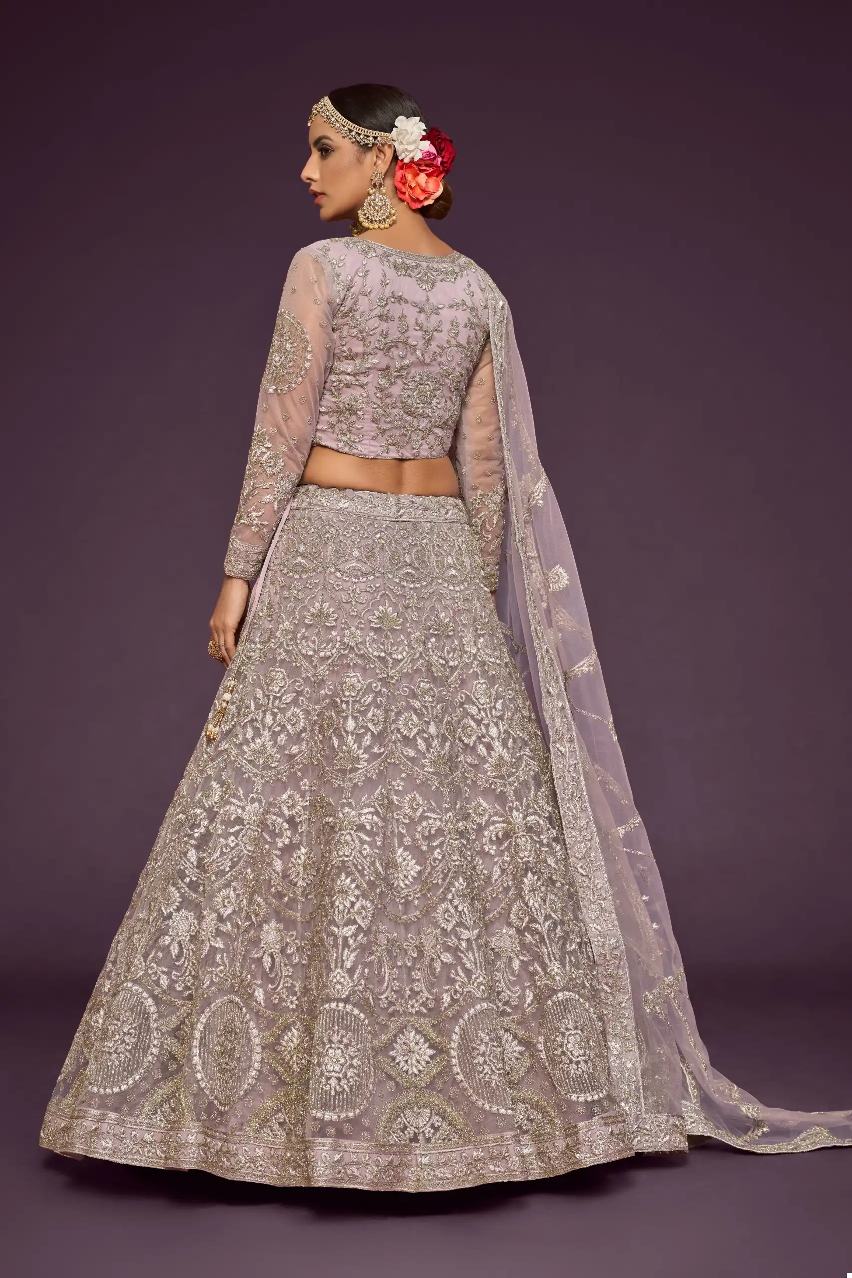 - Lehenga: Made of net thread, Badla, glitter Dori, and Zari embroidery work, with satin and can-can layered net inner for added volume.