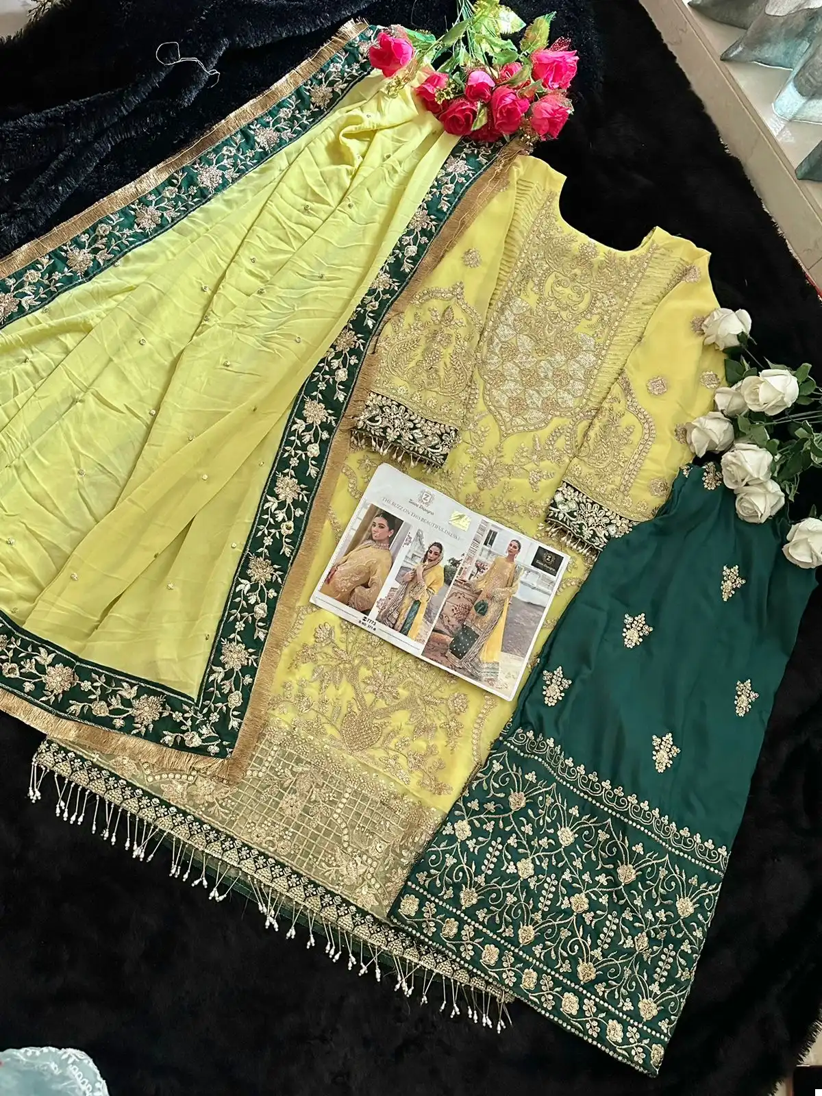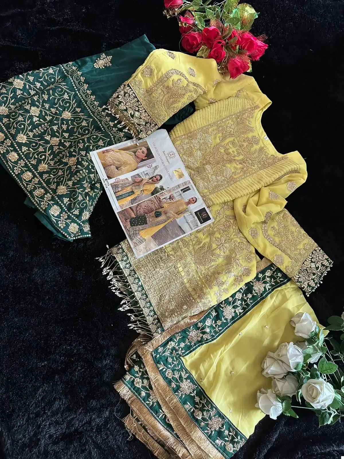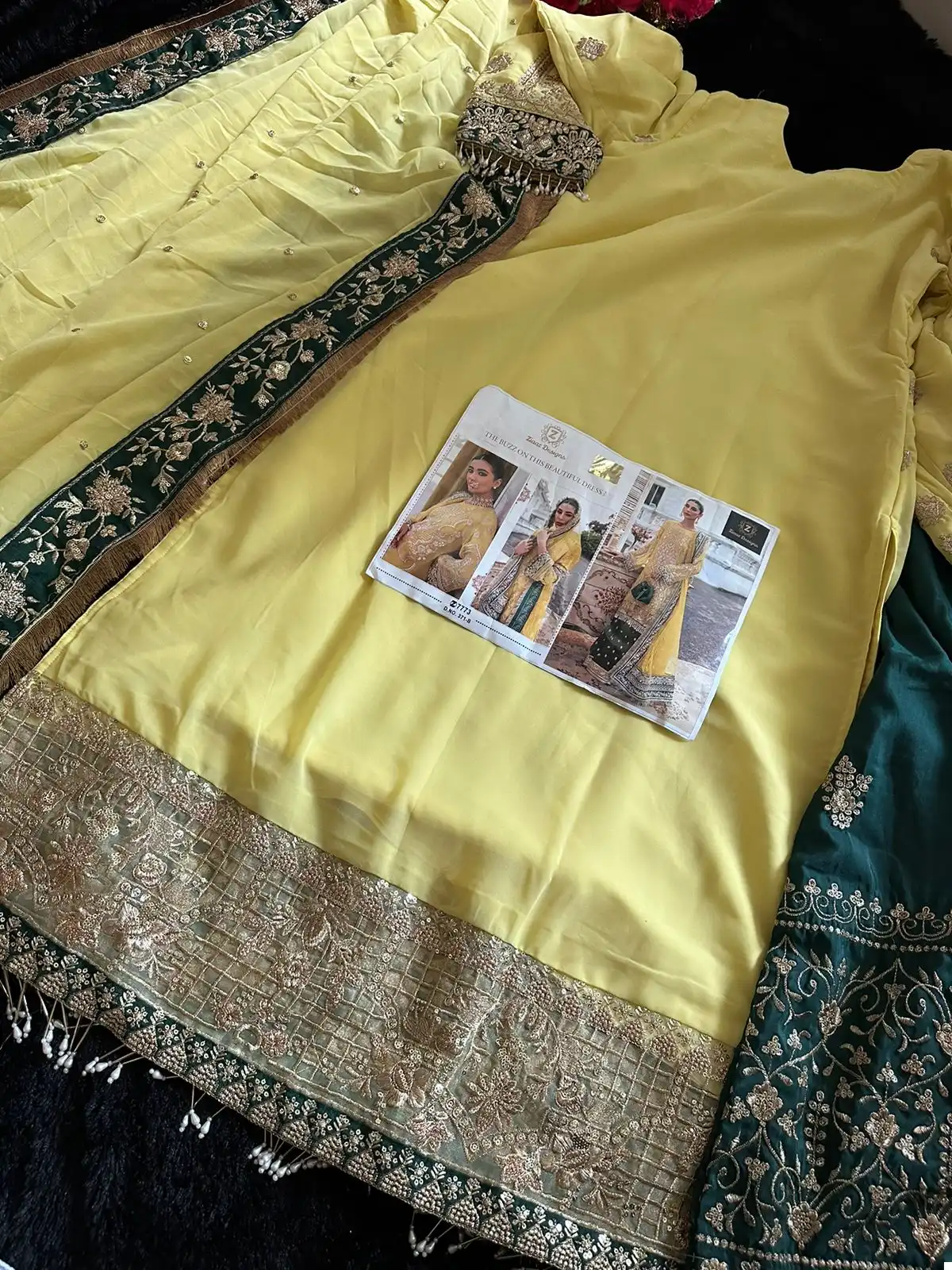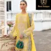 Georgette Embroidered Very Beautiful Yellow Semi Stitched Outfit With  Back Embroidery Daaman Border And Laces Provided With The Outfit