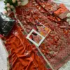 Top (Georgette Embroidered): The top of this outfit is crafted from georgette fabric, known for its lightweight and flowy nature. What makes it truly special is the intricate embroidery work that adorns the outfit. The dark pastel orange shade adds a touch of sophistication, and the outfit comes semi-stitched, allowing you to customize the fit according to your preference. It also includes a beautiful daaman lace, enhancing its overall appeal.