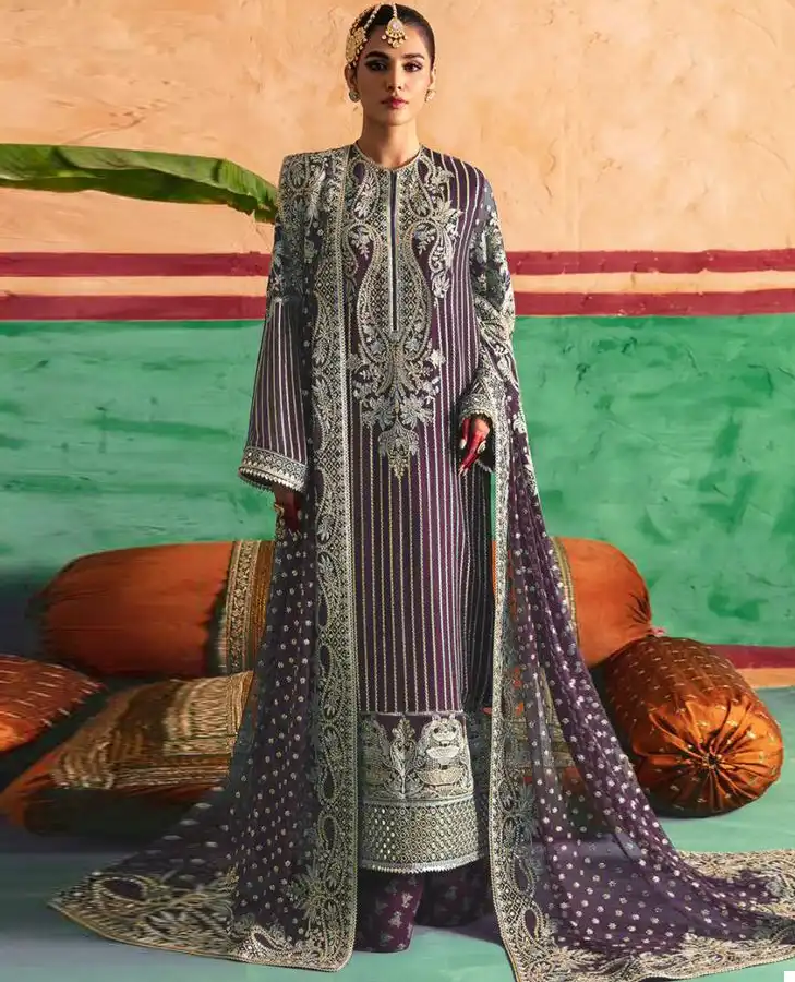 - Georgette Dupatta: The georgette dupatta is heavily embroidered, adding to the overall charm of the outfit. It enhances the traditional appeal and can be draped beautifully.