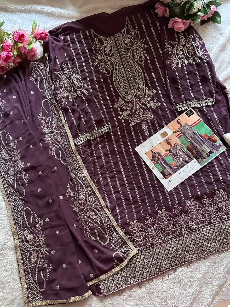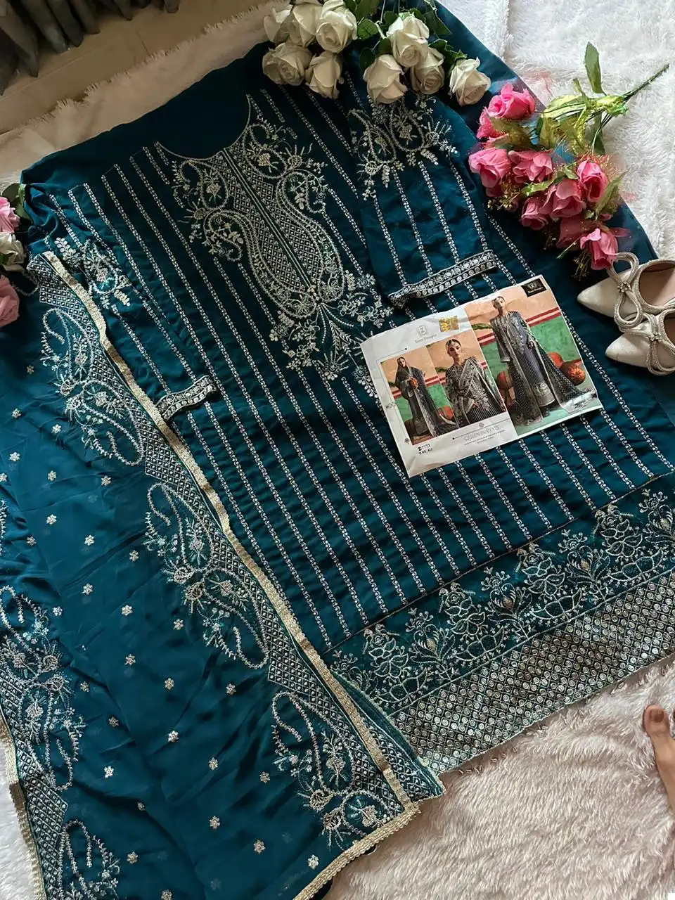 Elevate your ethnic wardrobe with this exquisite Georgette Heavy Embroidered Semi-Stitched Outfit. This outfit is designed to make you look stunning and is suitable for various special occasions.
