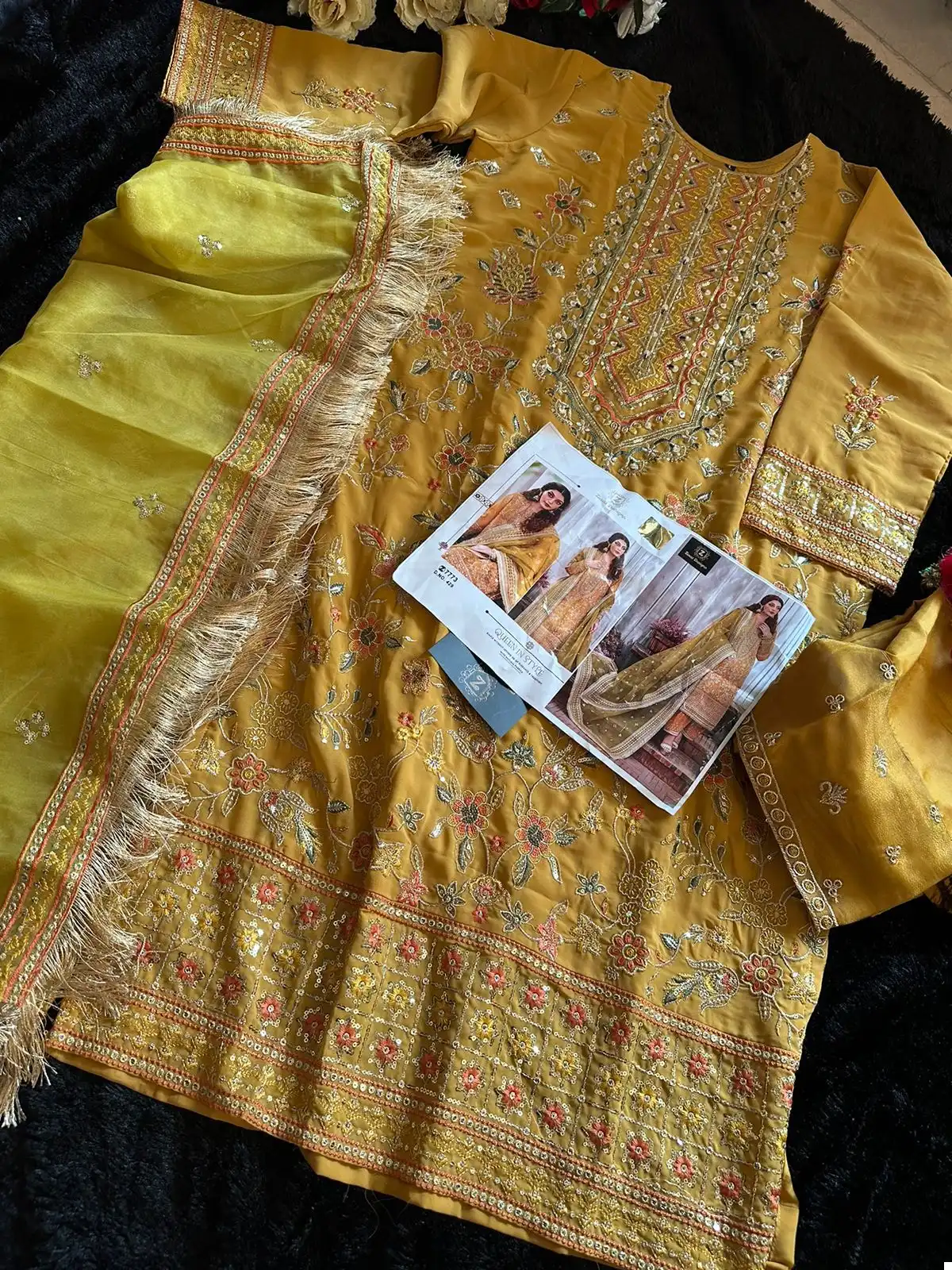 Georgette Embroidered Very Beautiful Shade Mustard With Lemon Contrast |