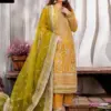 - Top: The Georgette top boasts intricate embroidery in a beautiful shade of Mustard, complemented by Lemon contrast detailing that adds a vibrant twist to your ensemble. With its elegant design and luxurious fabric, the top exudes sophistication and grace, making you the center of attention at any event.