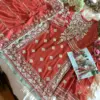 - Dupatta: Complete your ensemble with the Georgette embroidered dupatta, featuring heavy border work and lace detailing. The dupatta adds an extra layer of elegance and grace to your look, enhancing the overall aesthetic appeal of the ensemble.