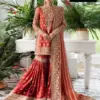 - Bottom: Paired with a Santoon inner and bottoms, featuring embroidered front work, this ensemble offers a perfect balance of style and comfort. The bottom’s embroidered detailing adds a touch of glamour to the overall look, elevating your outfit to new heights of sophistication.