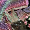 - Top: Georgette Shaded Very Heavy Embroidered, Very Beautiful Tricolored Printed Embroidered Handwork Semi Stitched Outfit With Applique Work