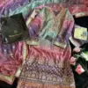- Dupatta: Embroidered Full Work Georgette Printed Tricolored Panni Work Dupatta