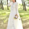 - The top is made of Georgette fabric and is heavily embroidered with intricate handwork, providing a beautiful shade of white. It is semi-stitched, suggesting that some part of the stitching may be done, leaving room for further customization.