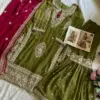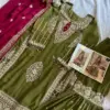 - Dupatta: The ensemble is completed with a Georgette dupatta, heavily embroidered to match the kameez. The dupatta’s substantial embroidery adds luxury and depth to the outfit, making it a stunning piece for any special occasion.