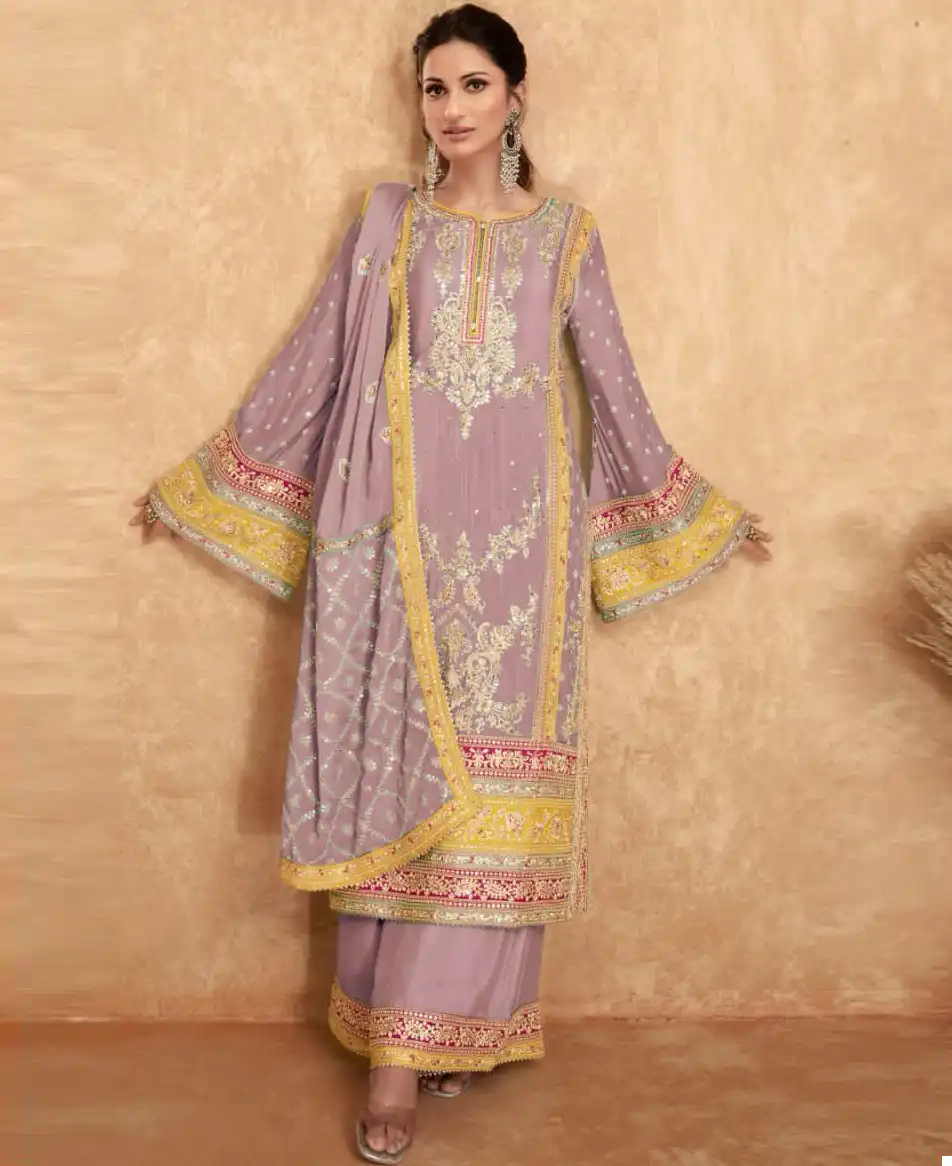 Dupatta: Completing the ensemble is a Chinon dupatta adorned with embroidered sequin work. The heavy dupatta adds a layer of elegance and sophistication to your look, elevating your ensemble to new heights. Whether draped gracefully over your shoulders or styled in various ways, the dupatta enhances the overall appeal of the ensemble.