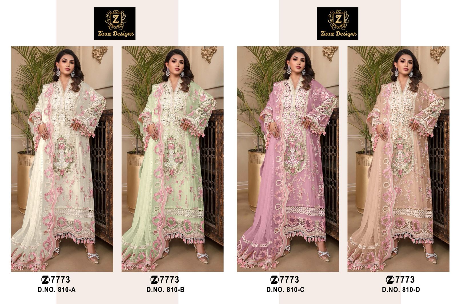 Ziaaz Designs Code 810 Colours Semi Stitched Jimmy Choo Wholesale Pakistani Suit Collection