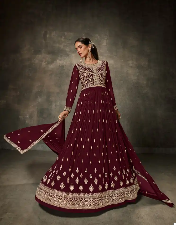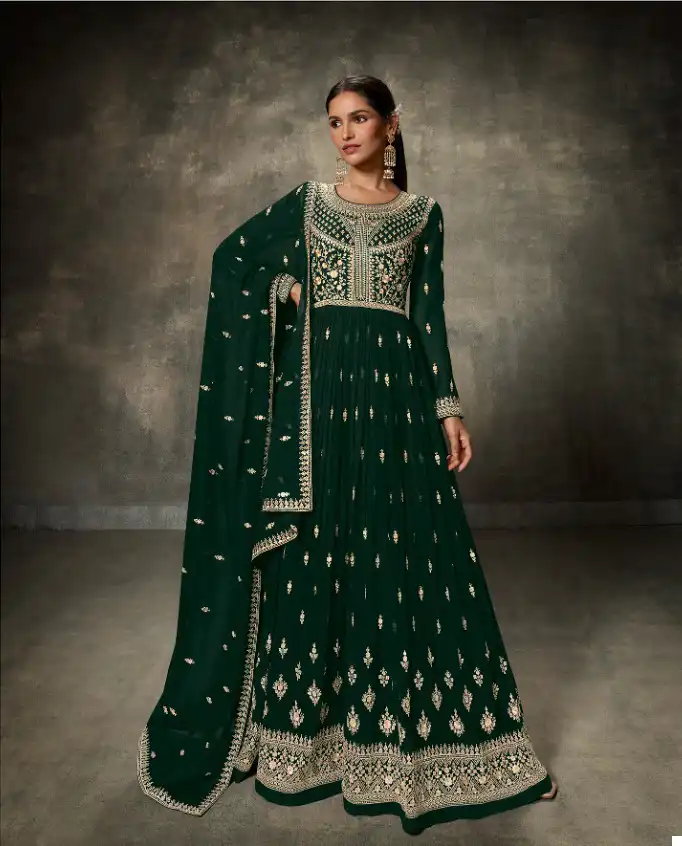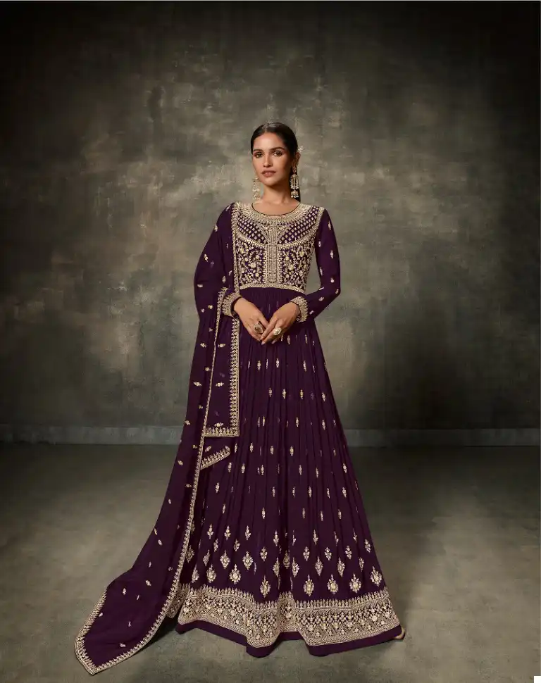 - Premium Faux Georgette Fabric: Immerse yourself in the lightweight, flowing elegance of faux georgette fabric. Known for its drapability and sheerness, this fabric lends an ethereal touch to these designer salwar suits.